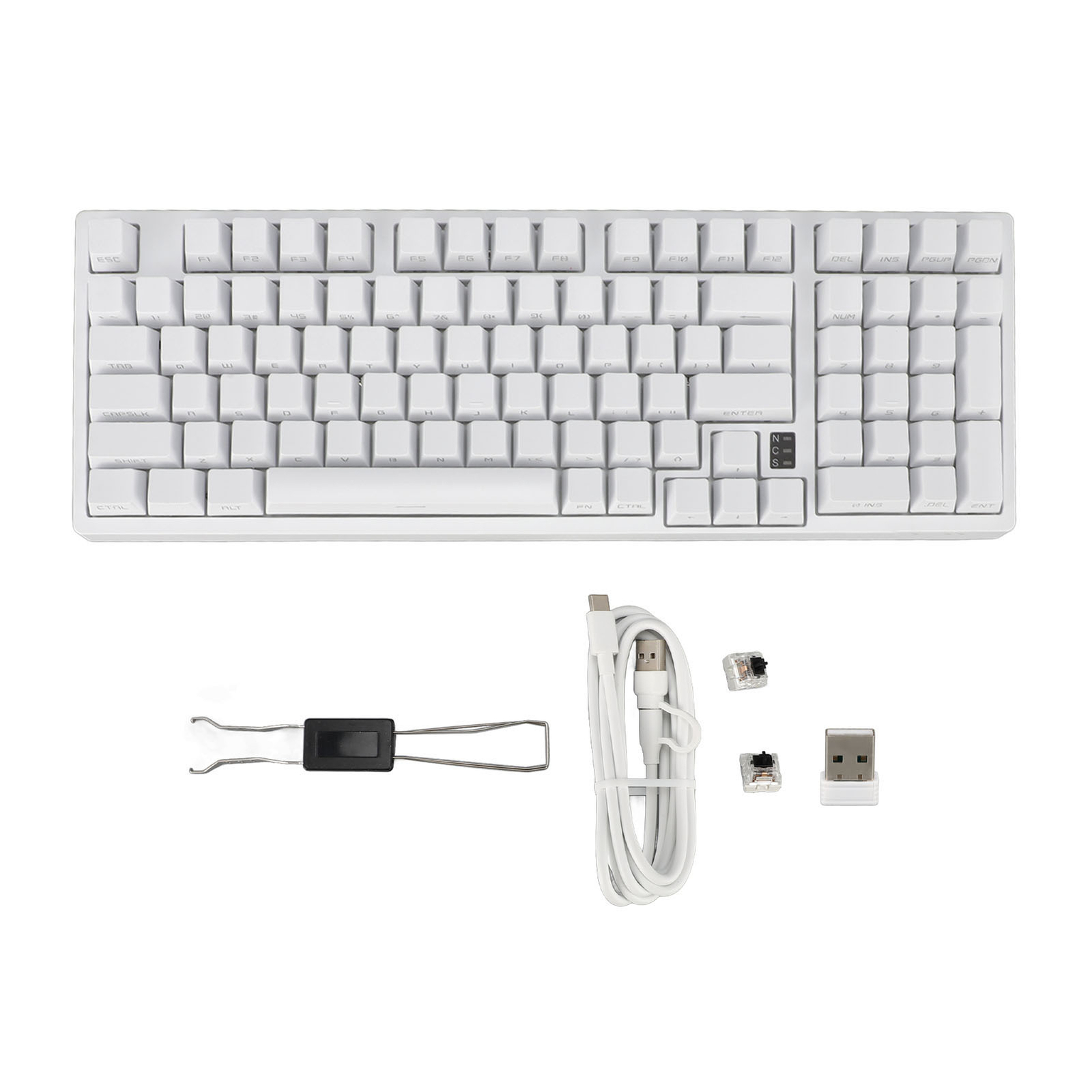 Feature: 1. 98 KEY THREE MODE KEYBOARD: Support three mode connection, wireless or wired, support wireless 2.4G, 3.0 or 5.0, Type C wired three modes, the key line separation is more convenient 2. STREAMLINED VOLUME WITHOUT REDUCTION IN FUNCTIONS: The optimized 98 key layout still retain the functions of the full keyboard, small and reasonable, simplifying and convenient to carry 3. RGB DYNAMIC BACKLIGHT: Cool and colorful switch at will, a variety of light effects switch at will, adjust the light speed and brightness, the key cap transparent light clear, to create a different cool and colorful ambiance for mechanical keyboard 4. HIGH EFFICIENCY AND ENERGY SAVING: Blue switch mechanical keyboard built in 3000mAh large capacity rechargeable li battery, long lasting, wired connection can be charged; At the same time, pressing the full key does not conflict with each other, fast respond, faster operate 5. COMPATIBLE SYSTEM: Gaming mechanical keyboard is suitable for 2000, for ME, for , for Vista, for 7, for HarmonyOS, for 8, for 10, for and other systems Specification: Item Type: Mechanical Keyboard Material: ABS Color: White Key Cap: Side transparent Keyboard Switch: Linear Action switch Connection Type: Support Wireless 2.4G, 3.0 or 5.0, Type C wired Lighting: RGB multiple lighting modes Key Rollover: Full key without collision Battery Capacity: Built in 3000mAh lithium ion battery Ergonomics: Supported Hot Swap: Full key hot swappable Padding: Dual layer padding(filled cotton and bottom cotton) Compatible System: For 2000, for ME, for , for Vista, for 7, for HarmonyOS, for 8, for 10, for and other systems Package List: 1 x Mechanical Keyboard 1 x USB Adapter 2 x Replacement Switch 1 x Data Cable 1 x Keycap Puller 1 x User Manual 1. Our listing price includes the value of goods,packaging cost,and export taxes,not including international duties. 2. duties,taxes,and charges are not included in the item price or shipping fee. 3. T he duties are buyers' responsibility .Please check with your country's customs office determine what these additional costs will be prior to your purchase. 4. All disputes arising from the duties will be submitted to ebay for solution. 1. Any questions, pls. contact us via ebay message or email us. We will reply your message within 48 hours. If you do not receive our reply within 48 hours, pls. post a message again because sometimes our message system may block some emails. 2. If you are satisfied with our service, pls. kindly leave us a positive feedback and give us the Detailed Seller Rating with all " 5 " in very area 3. Our aim is to provide Level Customer Service, your recognition will encourage us greatly and serve you better. We strive to keep all our customers satisfy. We will do our up most to exceed your expectations in customer service, communication and dispatching of your orders.