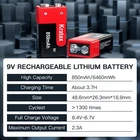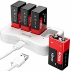9v Rechargeable Batteries 4Pack 850mAh High Capacity 9volt 6F22 Lithium-ion Batteries with Fast Charger, 1000 cycles Long-lasting, for Smoke Alarms Guitar Microphones Multimeter Cameras Remotes ๐๐850mAh High Capacity: brand new 9V Rechargeable Batteries has 850mAh, Cycle life can reach 1000 times. 9 Volt square 6F22 lithium battery has 40% higher capacity than other brands of 600mAh lithium-ion battery, full charge voltage: 8.4V-8.7V, maximum output current: 2.3A, larger capacity and ultra long lasting. The service life is 3 times that of alkaline batteries and 5 times that of carbon batteries. ๐๐Multi-Protection: Our batteries and chargers have passed ROHS, CE, CQC, PSE, etc. certification. Built-in protection device to prevent Overcharge, Overvoltage, Overcurrent, Over Discharge, Reverse Charge and Short-circuit protection, can protect the battery and charger very good. ๐๐Wide Compatibility: Our 9v lithium battery is suitable for various electrical appliances such as Wireless Microphone, Multimeter, Electric Guitars, Walkie-talkie, Toy Remote Controls, Smoke Alarm, Smoke Detectors, Cameras, Massagers, Alarm Clocks, Portable Radios, Transistor Radio. ๐๐Independent charging Channels: Input: 5V 2A. One battery can be charged separately, without the need to charge in pairs. With USB Type-C charging cable that can fully charge 1 or 4 batteries in about 3.7 hours. Constant voltage charging is controlled by IC, there is no memory effect, without any damage to the battery, ensuring the battery's cycle life and capacity. Charging via USB cable, not affected by the environment. ๐๐Low-carbon and environmental: It does not contain any toxic and harmful heavy metal elements and substances, such as lead, mercury, and cadmium. Low self-discharge, is about 0.03% per month, which is less than 1/100 of Ni-MH batteries, the weight of our battery is 30% lower than Ni-MH batteries. Shipping We ship within Three business days of payment, usually sooner. Some delivery times are longer than normal due to increased demand. We use a selection of shipping services such as UPS, FedEx, USPS etc. We only ship to the lower 48 states, no APO/FPO addresses or PO Boxes allowed. Local pickups and combined shipping options are not provided at this time. Return You can return a product for up to 30 days from the date you purchased it. Any product you return must be in the same condition you received it and in the original packaging. Please keep the receipt. Payment We accept payment by any of the following methods: PayPal Please pay as soon as possible after winning an auction, as that will allow us to post your item to you sooner! Feedback Customer satisfaction is very important to us. If you have any problem with your order, please contact us and we will do our best to make you satisfied. Contact Us If you have any queries, please contact us via ebay. We usually respond within 24 hours on weekdays. Thank you for shopping at our store.