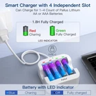 Pallus 1.5V Rechargeable Lithium AA Batteries 3500mWh, 1100mWh AAA Lithium Batteries SAVE YOUR MONEY & SAVE THE WORLD Recycleable and Environmental ProtectionCapable of 1600 charge cycles, free of Lead and Mercury, rechargeable batteries can reduce the harm of regular batteries to the environment. WIDE TEMPERATURE RANGE DESIGN Always reliable and useable with temperatures ranging from -4°F to 140°F. Whether you are in the hot desert or cold winter, it can work normally! PACKING LIST Each is pre-charged, but charge before use is suggested for better performance. 2/4/6/8/12/16/20/24x Pallus Rechargeable AA/AAA Lithium Batteries(By Your Choice) 1x 4-Solt AA Charger with USB-C Charger Cable(By Your Choice) 1/2/3/4/5/6x Batteries Storage Box(By Your Choice) 1x Manual Please use our charger, unauthorized chargers can cause battery damage! Suitable Blink cameras New generation Hixon AA Batteries support Blink Video Doorbell, Blink Floodlight, Blink Indoor (gen 2) and Outdoor, Blink XT2, Blink XT, Indoor (gen 1) Camera. Can I use other brands of chargers? Please use our lithium-ion battery charger(Kratax, Pallus), and do not use other brands of chargers without authorization. Not suitable External speedlite This lithium AA battery built-in protection chip,the max discharge current is 3A. The instantaneous current of the external speedlite can reach 5A or higher, which will cause circuit protection of the battery and even damage the battery. Pallus AAA Lithium Batteries Rechargeable Durable & Environment: Free of Lead and Mercury, rechargeable batteries can reduce the harm of regular batteries to the environment, more economical and environmental. Cycle 1600s of Times Cycle times to over 1600x, the combined value of a single battery exceeds 1300 ordinary dry batteries. All batteries are guaranteed to be pre-charged before leaving the factory. Pallus warrants these batteries to be free from defects in materials and workmanship. 1.5v Constant Voltage Output & High Capacity 1100mWh, Longer life than normal Alkaline batteries and other rechargeable battery. Stable outputs 1.5 voltage from 100% to 0% electric capacity, providing constant voltage and best performance in high current and voltage device. Specification: Capacity: 1100mWh Constant Voltage Output: 1.5V Cycle Life: > 1600 cycles @ C/5 to 80% of inital capacit Memory: No Memory Effect Max. Discharge: 800mA continuou Size: 44.5*10.5mm Charging Time: About 1 hours Discharge Current: 1000mA constant current 1600 times charge and discharge Maximum Charging Current: 500mA Maximum Discharge Current: 2A Operating Temperature: Discharge temperature -20°C to 60°C Charging temperature: 5°C to 45°C