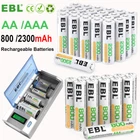 Please note that the package included is according to what you choose. For AAA AA battery Features : * 100% Brand new and high quality * It is 4 in 1 EBL AA AAA rechargeable NI-MH replacement battery * The latest lock electric technology are adopted * Nimh environmental protection material * Rechargeable battery, up to 1000 recharge cycles * Excellent high discharge/drain performance * Exact replacement for standard AA AAA size batteries * Superior performance under low temperature condition * Longer in high drain devices than Alkaline batteries * Can be commonly usedd for for high power demend devices such as Digital Cameras, CD Players, Remote Control Vehicles, Metal Detectors, PocketFlashlights, PDAs Palm Pilots, Pagers, Game Boys, Children's Toys, etc Specification : Battery type: Ni-MH Battery size: AA R6 / AAA R03 Battery voltage: 1.2V Battery rated capacity: 2300mAh / 800mah Recycle times: 1200 times (Each four batteries come with one case box) For Charger #2 Features : 1. 100% New Brand and High Quality. 2. Short circuit protection, to prevent electrical short circuits from charging. 3. This universal charger can charge for 1-4pcs AA/AAA/C/D and 1 or 2pcs 9V Ni-MH/Ni-CD rechargeable batteries. 4. This charger is for using indoor only,keep it away from miost and heat. 5. Easy to use, it has LCD screen for AA/AAA/C/D battery and LED indicator for 9V battery to show the status of charging. 6. Automatic recognition function: unique algorithm to detect bad or defective cells, automatically detect non-chargeable or disposable battery and cease charging. Specifications: 1. Input: 100-240V AC, 50/60Hz 10W, 12V DC 800mA 2. Output: AA/AAA/C/D 1.2V DCx4 1000mA, 6F22 9V DC 30mA 3. No Load Power Consumtion: 0.5W Max 4. Full Load power consumtion: 10W Max 5. Battery Chrge Rate: >96% 6. Size: 195mm x 93mm x 53mm 7. Weight: 320 g 8.What's inside: 1x EBL Universal LCD Smart Battery Charger 1x Charge Cable 1x User Manual Battery Type (Ni-MH) Capacity Charging time (approx.) AAA 500-1200mAh 1 - 3 hours AA 1300-2800mAh 1 - 3 hours C 1800-5000mAh 1 - 5 hours D 1800-10000mAh 1 - 8 hours 9V 150-600mAh 5-20 hours Compatible with: AA/AAA/C/D Ni-MH/Ni-Cd rechargeable battery 9V Ni-MH/Ni-Cd rechargeable battery Package Included: According to what you choose On Feb 13, 2025 at 18:50:52 PST, seller added the following information: