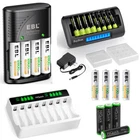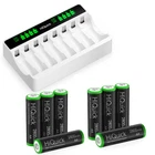Please Know that there is Three Brand batteries on this listing.The package included is according to your choice!! For AA AAA batteries Specification 1. Battery Voltage: 1.2V / 1.2 Volt 2. Capacity: (1100mAh AAA )/ (2800mAh AA) 3. Battery Size: AAA/AA 4. Rechargeable type: Ni-MH/ NIMH High capacity NO memory 5. Storage Case : Yes (for 4PCS Battery/per case) 6. Model: R03/ R06 Features * 100% Brand new and high quality * It is 4 in 1 EBL AA AAA rechargeable NI-MH replacement battery * The latest lock electric technology are adopted * Nimh environmental protection material * Rechargeable battery, up to 1000 recharge cycles * Excellent high discharge/drain performance * Exact replacement for standard AA AAA size batteries * Superior performance under low temperature condition * Longer in high drain devices than Alkaline batteries * Can be commonly usedd for for high power demend devices such as Digital Cameras, CD Players, Remote Control Vehicles, Metal Detectors, PocketFlashlights, PDAs Palm Pilots, Pagers, Game Boys, Children's Toys, etc For 8-Slot LCD Charger ( Rayhom ) Feature: Fast AA AAA Charger : Independent charging slot charge any 1- 8 batteries of Ni-MH AA AAA rechargeable batteries, each four cells can work independently with 2000mA output. The charging speed can adjusted by the number of batteries. RayHom AA AAA rechargeable batteries is the highest capacity on Amazon, low self-discharge can be recharged up to 1200 times cycle, AA AAA NIMH Batteries with UL safety certificate High Quality: AA AAA battery charger LCD can display the charging status of each battery, charger comes with chip control, when the battery is fully charged, it will automatically stop charging Unique Trickle Charge - Adopting -∆V intellectual cut-off charging method, automatically turn to trickle charge, prevent over-heat/over-current/short-circuit, more safety. Attention: Current distribution:Left 2000mA+/-200mA 100% for one cell(50% for two cells / 33% for three cells / 25% for four cells.Right four cells: Such as left four cells) Please install the batteries correctly: Plug in the (+) pole of the battery first, then press the (-)pole Only charge aa aaa ni-mh ni-cd batteries batteries(Don’t charge Alkaline Lithium batteries) Working: 0℃ to 40℃, it is normal phenomenon that the battery is warmer than room temperature when charging. For 8-Slot LCD Charger ( HiQuick ) Feature: [Quick Charger] HiQuick charger adopts Micro USB and TYPE-C dual input, and supports QC fast charging technology, which can adjust high current mode. [Practical and Multiple Slots Design] 8 bays designed for Ni-MH/Ni-CD AA AAA rechargeable batteries, two channels of independent identification chip, can charge 1 to 8 batteries, depending on your choice. [LCD Pilot Lamp] Battery charger with smart LCD which is more convenient to understand the charging status, and check the defective battery detection results. [Intelligent USB Charging] Freely charge anytime, anywhere, suitable for all kinds of USB interface input voltage, convenient and fast. The 2 charging ports should not be used at the same time. [Unique Charging Mode] This charger adopts -DV control technology, constant voltage and constant current, effectively improve battery life and prevent accidental damage. Let you and your family use it safely. Specification Brand: HiQuick Compatible Devices : Aa aaa nimh nicad rechargeable batteries Item Dimensions LxWxH : 5.51 x 3.54 x 1.38 inches Item Weight : 166.9 Grams Battery Cell Composition : NiMH Input: Micro USB/Type-C DC5V/2A Min Output: AA: DC 1.2V 1800mA; AAA: DC 1.2V 900mA Full-load Power: 10W Battery Charging Rate: ≥80% Charging Way: Constant voltage and current control Weight: 101g ± 5g (No batteries included) For AA AAA 9V Ni-MH Ni-CD Battery Wall Charger (EBL) Product Features 1. 100% New Brand and High Quality. 2. The LED Smart Charger can charge 2 or 4 AA AAA NI-MH/NI-CD and 1 or 2pcs 9V NI-MH/NI-CD Rechargeable Battery individually . 3. Charge Mode: When powered on for about a second, the LED indicator will change from Green to Red, and finally to Green again. During the charging, the LED indicator is Red. And when fully charged, it will turn to Green. Please notice the place of anode and cathode when pit in the batteries and do install the batteries in pairs or in fours in turn. Otherwise, the indicator will not light, and batteries cannot be charged. 4. Warranty: one year 5. Shipping: From US 6. Worldwide voltage for 100-240V 50/60Hz adapter input, can be applied to supplied voltage globally. Product Details 1. Input: AC 100-240V, 50-60Hz. 2. Output: 2.4V DC for AA/AAA ; 9V DC for 9v battery 3. Dimension:100*67*27 mm 4. Weight: 89 g 5. Color: Black 6. Slots: 9v Slot: 2; AA/AAA Slot: 4 Compatible With 9V Ni-MH Ni-CD Batteries AA Ni-Mh Rechargeable Battery AA Ni-Cd Rechargeable Battery AAA Ni-Mh Rechargeable Battery AAA Ni-Cd Rechargeable Battery Note: This battery charger is used for AA/AAA Ni-MH/Ni-Cd batteries, and 9V Ni-MH/Ni-Cd batteries. The absolute 0V battery can not be charged. Can not charge alkaline or carbon battery. For NI-CD AAA batteries Product Features 1. [High Capacity & Long Lasting Time] - 500mAh High Capacity can give you more run time when fully charged. Also can replace other capacity NiCd AA cells AA battery. 2. [Match Your Device Perfectly] - Perfect used for solar powered garden lights, landscaping lights, lawn lights, etc. replace all alkaline disposable batteries that power your TV remotes, wireless mouse and keyboards, gaming controllers, RC remotes and others. 3. [Good Performance] - Much better high temperature performance than other type batteries, can be used in -4? to 140?, They can be charged from the sun even in the snow. 4. [Low self-discharge] - Embedded seal structure expand the space of crystal lattice, make more room for hydrogen, so EBL batteries will holds 75% power after 3 years benefit from its concentration to low self-discharge project. 5.[Storage Cases] - every 4