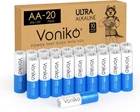 Powerful and Long Lasting — Using alkaline, our aa size batteries are 6-9 times longer compared to yesteryear’s standard carbon batteries. These AA alkaline batteries deliver lasting performance in your devices. Environmentally Friendly — We fully consider our environmental impact as we make our premium grade aa alkaline batteries. Our AA batteries 20 pack are free of lead, mercury and cadmium with strict controls at all stages of the manufacturing process. And we provide variety packaging which could be reused. Perfect to Power Your Electronic Devices — These 1.5 volt Voniko aa batteries are perfect for many popular gadgets and household items: Digital cameras, remote/game controllers, wireless keyboards and mice, alarm clocks, radios, shavers, and electronic toys to name a few. Maximum Shelf Life — You can store our double aa batteries for up to 10 years and they'll be as fresh as the day they were made. Lasting as long as many leading national brands, investing in our double a battery pack will save you much money in the long-run. Safety and Reliability — Trust that Voniko LR6 batteries are 100% leakproof with combining a double layer internal structure housed with a stainless steel cover. Avoid shorting circuits, mixing and matching old batteries with new ones. Product Description