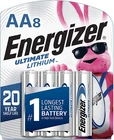 4 pack of Energizer Ultimate Lithium AA Batteries Energizer Ultimate Lithium AA batteries are the world's longest lasting AA batteries Superior performance in extreme temperatures from -40 degrees F to 140 degrees F ensure reliable use in all seasons These double A batteries are leak proof batteries, guaranteed based on standard use AA battery 24 pack lasts up to 20 years in storage Features: 3000 mAh - AA - Lithium Iron Disulfide (Li-FeS2) - 1.5 V DC - 4 / Pack, Ultimate Lithium Batteries are Energizer's best and longest-lasting, disposable AA batteries. Depend on these batteries for your most critical devices for work, play and home. Whether used in a wireless mouse, for high-powered LED lighting, a laser level or stud finder, Ultimate Lithium Batteries help you stay powered up on the job. They offer superior performance in temperatures from negative 40 to 140 degrees Fahrenheit so they're ideal for use in all seasons. These longer-lasting, reliable batteries hold their power in storage for up to 20 years. They create less waste and have less impact on the planet because you're using fewer batteries.