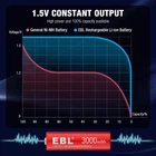 3000mWh High Capacity: AA rechargeable batteries with advanced high density lithium cells, makes our batteries lasting longer than other batteries at same capacity. 1.5V Steable Output: These AA lithium batteries can provide 1.5V constant output, stronger power and better performance than 1.2v Ni-MH batteries, ideal for high power consumption devices, such as toys, game controller, cameras and more. Durable Rechargeable Battery: rechargeable AA Li-ion batteries can be recharged up to 1,200 cycles, no memory effect, longer battery service life.(Note:These 1.5v lithium batteries can only be charged by 1.5V battery charger) Lightweight and Powerful: These lithium batteries are lightweight but high energy density, it can work continuously and output efficiently, help your devices work better. Multiple Battery Protection: Built in smart chip, protect the battery against explosion. Every batteries had been tested many times to ensure safe use, extend service life.
