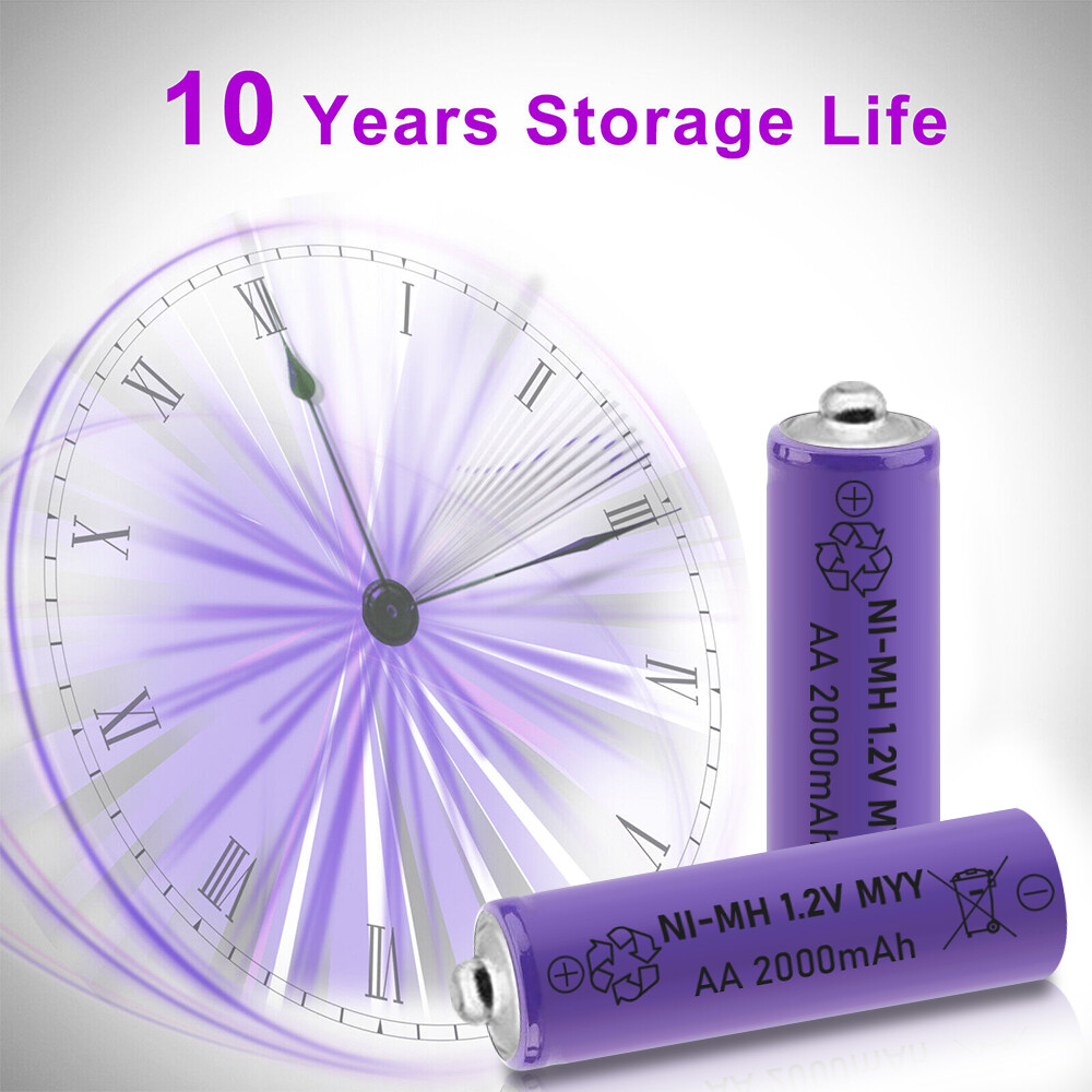 AA Rechargeable 2000mAh Batteries with 4-Slot LCD Charger for Home Use