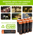 【Strong Performance AA Solar Batteries for Solar Lights 】:Solar AA Batteries with 800mah real capacity, built with latest low-self discharge technology and NiMH material. The more powerful solar batteries can lasting longer time after full charge for solar lights and other devices. 【Strong Performance AA Solar Batteries for Solar Lights 】:Ni-MH aa rechargeable batteries built with 800mah high capacity, can lasting longer time than 300mah, 600mah nimh batteries and Nicd aa batteries. It’s a perfect aa rechargeable solar batteries for solar lights. 【Multiple Daily Uses】: Standard aa size batteries can be used on various outdoor solar garden lights, , keyboards, TV remotes, toys, game controllers, digital , will fit all your device perfectly in daily life usage, high quality AA rechargeable batteries supply long lasting power, great convenience and good performance. 【Upgraded Anti-leak and Low-self Discharge Technology】: With advanced and upgraded Low-Self Discharge and anti-leak technology, these aa rechargeable batteries can maintain more than 80% capacity for 3 years without leakage, won’t lose the maximum capacity, keeping the best performance and a longer battery life, good quality to save your money. 【Support charging Methods】: These rechargeable NiMH aa batteries can be charged via solar or standard aa battery charger. For better performance, suggest to use battery charger to fulfil the battery when the sunlight is no that enough to fully charge the battery.