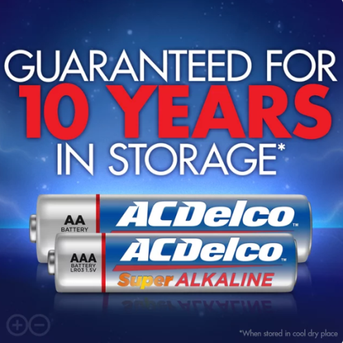 About this item Product details ACDelco AA and AAA Super Alkaline Batteries are equipped with advanced technology you can count on. ACDelco alkaline batteries perform better than the competition in high-drain and super high-drain devices, and they provide consistent discharge performance. ACDelco alkaline batteries are designed for long shelf-life with stainless steel pre-coating that prevents leakage and advanced ingredient formulation that helps maintain power over time. This set includes 24 AA batteries and 24 AAA batteries. AA and AAA batteries are great for a variety of household devices, including clocks, remote controls, and toys. The 1.5-volt batteries contain no mercury or cadmium, making them a smart choice for your family and for the environment. A trusted national brand, ACDelco offers a wide variety of batteries you can count on, including alkaline batteries, lithium coin cell batteries, rechargeable batteries, and car batteries. 48 Batteries: 24 AA batteries and 24 AAA batteries in recloseable storage pack High Performance: Performs better than the competition in high-drain and super high-drain devices 10-Year Shelf Life: Holds power and will not vent or leak when stored in a cool, dry place No Mercury: Contains no mercury or cadmium; safe for the home and better for the environment Everyday Electronics: ACDelco alkaline batteries area a household essential for all your electronic devices, toys, remote controls, gaming devices, flashlights and more Specifications Brand ACDelco Battery Size AA, AAA Volts 1.5 V Manufacturer Part Number AC816 On Feb 4, 2025 at 22:09:10 PST, seller added the following information: On Feb 25, 2025 at 07:58:01 PST, seller added the following information: