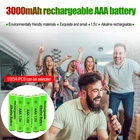 Features. 1. This 3000mAh AAA battery is a rechargeable battery. 2. The rechargeable battery has a long service life and high efficiency. 3. Small and rechargeable so you can take it with you wherever you go. 4. AAA batteries are commonly used in toys, portable cassettes and TV remote controls. 5. Suitable for clocks and radios, electronic games, smoke alarms, torches, DVDs, MP3s, digital cameras, remote controls, electric toys, etc. Specifications. 1.Capacity: 3000mAh 2.Voltage: 1.5V 3. Charging type: AAA, alkaline rechargeable battery 4. Up to 1000 charge cycles 5. Excellent high discharge performance 6. Precise replacement of standard AAA batteries 7. Excellent performance in low temperature conditions 8. Colour: green Packing list. 4/12/20*AAA batteries