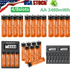 Product Description Pls Check photo & read the whole listing . if you Order 4x AA Batteries , You will Get 4x AA Batteries Only . Charger is Not comes with it. We appreciate your understanding. For AA / AAA Battery AA:3400mWh AAA:1100mWh Note: Use a charger with a voltage of 5V2A or 5V1A, do not use a fast charger (too high voltage). it showed the green light indicating when they were fully charged Features 1.5V AA /AAA Rechargeable Battery, Steady Voltage for high current applications 1500 cycles time - Long battery Life Ideal for digital cameras, remote controls, toys, and more for high current applications long-lasting Convenient, long-lasting double a batteries These cells can provide approximately the same and steady voltage until the whole cell is depleted Fully charged in 2 hours - Fast charging AA/ AAA Battery The Details Size: AAA/AA Voltage: 1.5V Capacity:AA:3400mWh / AAA:1100mWh Type: Rechargeable For AA /AAA 4 Slot Battery charger(only can charge AA / AAA battery) 1.5V High Performance AA Rechargeable Batteries Long-lasting batteries: can be recharged up to 1000 times when fully or partially drained. In the long run, it is more economical than using ordinary batteries. Fast Charging Lithium AA/AAA Battery Charger Independent loading slot, can charge 1/2/3/4 AA/AAA batteries without pairing. Fast charging saves you more time and energy. Batteries are great for use in household devices such as digital cameras, toys, remote controls,hand held games, 2-way radios, PDAs, flashlights, alarm-clocks, LCD-TVs, Toothbrushes, Shavers and portable audio players For AA /AAA 8 Slot Battery charger (only can charge AA/ AAA battery) Outstanding design Independent loading slot, can charge any number of AA / AAA batteries without pairing. Fast charging saves you more time and energy. Rechargeable lithium battery with 1000 cycles Our battery does NOT ONLY have the advantages of a lithium battery: long service life, no memory effect, low self-discharge. Multiple protection Supports protection against overcharge, overdischarge, overvoltage, overcurrent and short circuit and ensures complete safety for you and your devices Easy Installation Can charge any number of AA / AAA batteries without pairing. Fast charging saves you more time and energy. This makes it ideal to keep all your replacement batteries ready for use at any time. Any question or problem, just contact us ~! Package included According to your choice Payment Returns Contact Us Shipping Feedback 1. We only accept eBay payments. 2. All payments must be made within 3 days after auction won. Item may be returned for refund or replacement within 30 days of the purchase date. Returned merchandise must be unused, in original packaging and include all accessories. Shipping costs are non-refundable. Please do not hesitate to leave us your 5 Star ★★★★★ of DSR positive feedback if you are satisfaction with our products ,delivery or services . If you have Any Questions Or Unsatisfied with your purchase, please Email us firstly to get a better solution before you leave a neutral or negative feedback, we work hard to make sure every customer 100% satisfied and resolve anyproblem for you. Please email us first in the following situations: 1.The item can't work properly. 2.The item broken on the post. 3.You bought or received the wrong items. 4.You have not received your shipment within the period. 5.Before you give us Negative feedback. 6.Before you open a case/return on eBay. All questions will be replied within 24 hours (Except Saturday and Sunday or holidays). Thank you for your kindness! 1. eBay Payments Confirmed Addresses Only. 2. No Delivery to Alaska and Hawaii or PR. 3. No P.O. Box and APO/FPO Delivery. 4. Tracking Number will be provided. 5. Domestic shipping is within the 48 Contiguous States of United States, the delivery time is between 2 and 8 days. Items will be shipped by UPS, USPS or Fedex within 3 business day after receiving full payment. 6. International shipping is from China, the delivery time is between 10 and 30 working days. As a seller , Positive Feedback is very important to us. We try our best to let our customers to be happy. If you have any question about your order, please contact us ,please let us know before you Leave the Negative feedback ,We are willing to do our best to make up for it, Thank you very much ! Payment 1. We only accept eBay payments. 2. All payments must be made within 3 days after auction won. Returns Item may be returned for refund or replacement within 30 days of the purchase date. Returned merchandise must be unused, in original packaging and include all accessories. Shipping costs are non-refundable. Please do not hesitate to leave us your 5 Star ★★★★★ of DSR positive feedback if you are satisfaction with our products ,delivery or services . Contact Us If you have Any Questions Or Unsatisfied with your purchase, please Email us firstly to get a better solution before you leave a neutral or negative feedback, we work hard to make sure every customer 100% satisfied and resolve anyproblem for you. Please email us first in the following situations: 1.The item can't work properly. 2.The item broken on the post. 3.You bought or received the wrong items. 4.You have not received your shipment within the period. 5.Before you give us Negative feedback. 6.Before you open a case/return on eBay. All questions will be replied within 24 hours (Except Saturday and Sunday or holidays). Thank you for your kindness! Shipping 1. eBay Payments Confirmed Addresses Only. 2. No Delivery to Alaska and Hawaii or PR. 3. No P.O. Box and APO/FPO Delivery. 4. Tracking Number will be provided. 5. Domestic shipping is within the 48 Contiguous States of United States, the delivery time is between 2 and 8 days. Items will be shipped by UPS, USPS or Fedex within 3 business day after receiving full payment. 6. International shipping is from China, the delivery time is between 10 and 30 working days. Feedback A