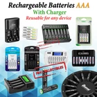 AAA Fresh Rechargeable batteries NiMH NiCD with Charger REUSABLE Battery. (this is not a lot, you receive 1 piece per order). Rechargeable Batteries (Choose between 2 or 4 or 8 or 12 or 16 Batteries) WITH CHARGER, also an option for a coin battery. The batteries rechargeable and have a long lasting life. The rechargeable batteries save money when you use the battery with a Battery Charger. AA or AAA rechargeable batteries made with recycled materials and chargeable batteries are designed to prevent leaks. Use the rechargeable batteries for photography camera like instax, video game systems, TV remote controls, indoor or outdoor solar garden lights, led candles, electronics, toys, flash lights, led light and other digital devices for convenient use with less waste. The batteries can be charged hundreds of times. All The Battery Charger charge all standard rechargeable battery sizes (AA, AAA). Delivers a full-capacity charge to 4 AA or AAA batteries in a short amount of time (times may vary by NiMH battery). The LED light bar indicator alerts you to your batteries' charging status. Built-in adapter and detachable cord allow for easy storage when not in use.