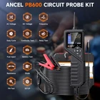 ANCEL PB600 Electrical Circuit Probe Tester Relay Injector Battery Test Tool ANCEL PB600 Product Description 【Multiple Functional Modules for Automotive System】 Multiple functions - almost covering the probe tools on the market. With Multimeter function, Oscilloscope mode, Continuity testing, Relay test, Activating components in your hand, Power supply/ground detecting/open & short testing, Trailer lights testing, Signal circuit testing, Checking for Bad Ground Contacts, Clean the Injectors, 30FT extension cable & LED light, AC/DC voltage/resistance/diode/frequency testing. 【Multimeter & Oscilloscope Tester】 The PB600 Circuit tester will be the more versatile and powerful Power Circuit Probe Kit you've ever seen. Contains the multimeter's DC voltage (VDC), resistance (OHM), diode/on-off test (DIO), current (AMP) and frequency test functions, combined with the unique oscilloscope function and buzzer, can test components according to voltage, resistance value, frequency duty cycle, and waveform diagrams to quickly diagnose problems with your circuit system. 【Activating Electrical Components】 Being able to ap-ply battery power or ground right to the probe tip gives you the ability to activate and dynamically test electrical components such as lights, motors and solenoids. 【Smart Test & Positive & Negative Test】 When connected to the probe of Car Electrical Test Tool to measure voltage, resistance, positive/negative polarity, it will automatically become an instant auto-range, intelligent judgment does not require manual selection, and the corresponding parameter values and prompts are displayed on the HD LCD screen. With a 30ft cable, you can quickly assist you in diagnosing the car's condition without opening the wiring. 【Clean the fuel injector】 It is extremely important to regularly test the fuel injector. PB600 provides 4 types of pulse signals (once or multiple times) combined with car cleaner to achieve maximum cleaning effect. 【Relay Test】 There’s nothing worse getting stuck on the trail at night because your light relay burnt out, losing your radio in the middle of a road trip, or not being able to finish your project because you’re short one small relay. With our PB600 relay test, fix your lights on the fly, and keep the road trip rocking all night long. 【Widely Application】 The ANCEL PB600 is essential for a range of automotive diagnostic scenarios, whether you're a professional mechanic troubleshooting complex vehicle issues or a DIY enthusiast performing routine maintenance tasks. With its versatile capabilities, it's perfect for diagnosing electrical problems, testing relays, analyzing fuel injectors, activating components, and even utilizing oscilloscope mode for advanced troubleshooting. It's a must-have tool for anyone working on automotive electrical systems Product Specifications Display: 2.4 inch TFT (320*240 DPI ) Supply Voltage :DC: 8V ~ 35V Operating Temperature: -20℃( -4℉) to 50℃ ( 122℉) Storage Temperature: -40℃( -40℉) to 65℃ ( 149℉) Dimensions (L*W*H): 228*80*32mm DC/ AC Voltage Test: -110V ~ +110V (True RMS Measure) Frequency: 0Hz ~ 1Mhz Duty Cycle: 0.0%~100.0% Fuel Injection: Voltage: 0~180V, Time: 0~25ms Resistance: 0~1MΩ Diode: Germanium diode, silicon diode Relay Test :Regular vehicle 4-pin or 5-pin relays Battery Test: 100-2000 CCA, 12V vehicle battery Rating Current: 1A~8 A Multiple Functional Modules : 1. Oscilloscope (Oscilloscope) Test Module Oscilloscope test function is mainly to test a variety of voltage signals, contains four kinds of functions, respectively, DC voltage test, AC voltage test, frequency test, duty cycle test, except DC voltage, the other three are except DC voltage, the other three have waveform display mode, which is part of the oscilloscope function. 2. Multimeter Test Module The multimeter test function module mainly tests resistor resistance and diode forward voltage. Among them, the resistance measurement function also contains a continuity test function, i.e., when the resistance of the tested wire is less than 30 ohms, the host When the resistance of the tested wire is less than 30 ohms, the buzzer of the main unit will alarm, which is used to measure whether the wire is disconnected or not. 3. Fuel Spray Nolle Test Module Injector test function module is mainly to test the parameters of the injector signal, and can be switched by pressing the key Waveform display and digital display mode. 4. Relay Test Module The Relay Test Function Module tests and helps to identify whether a vehicle relay is functioning correctly, primarily through relay test cables, auxiliary earth wires and probes. 5. Battery Test Module Battery test function module is mainly to test the car battery system, contains 3 functions, respectively, battery health test, battery start test, battery charging test, etc., so as to test the good or bad of the car battery 6. Active Test Module The component activation detection function is mainly used to activate automotive components by pressing a specific button to make the host probe connect to the positive pole of the car battery or ground, thus supplying power to the automotive components. 7. Pn-active Test Module The PN-TEST test function module functions in the same way as the diode test in the multimeter test module. 8. Setup Module The setup module is used to set the host status, such as language selection, buzzer switch, instrument self-test, host upgrade and host version number. Double Overload Protection ANCEL PB600 automotive circuit tester, your top-notch safety pick! With an internal circuit breaker and a 10A fuse on the ground wire, it offers rock-solid dual protection. When current overloads, the fuse blows first to safeguard your product and car.The toolbox comes with 2 extra fuses for replacement. Whether checking continuity or short/open circuits, PB600 takes it all in stride! Component Activation & Relay Test ANCEL PB600 can generate activation signals