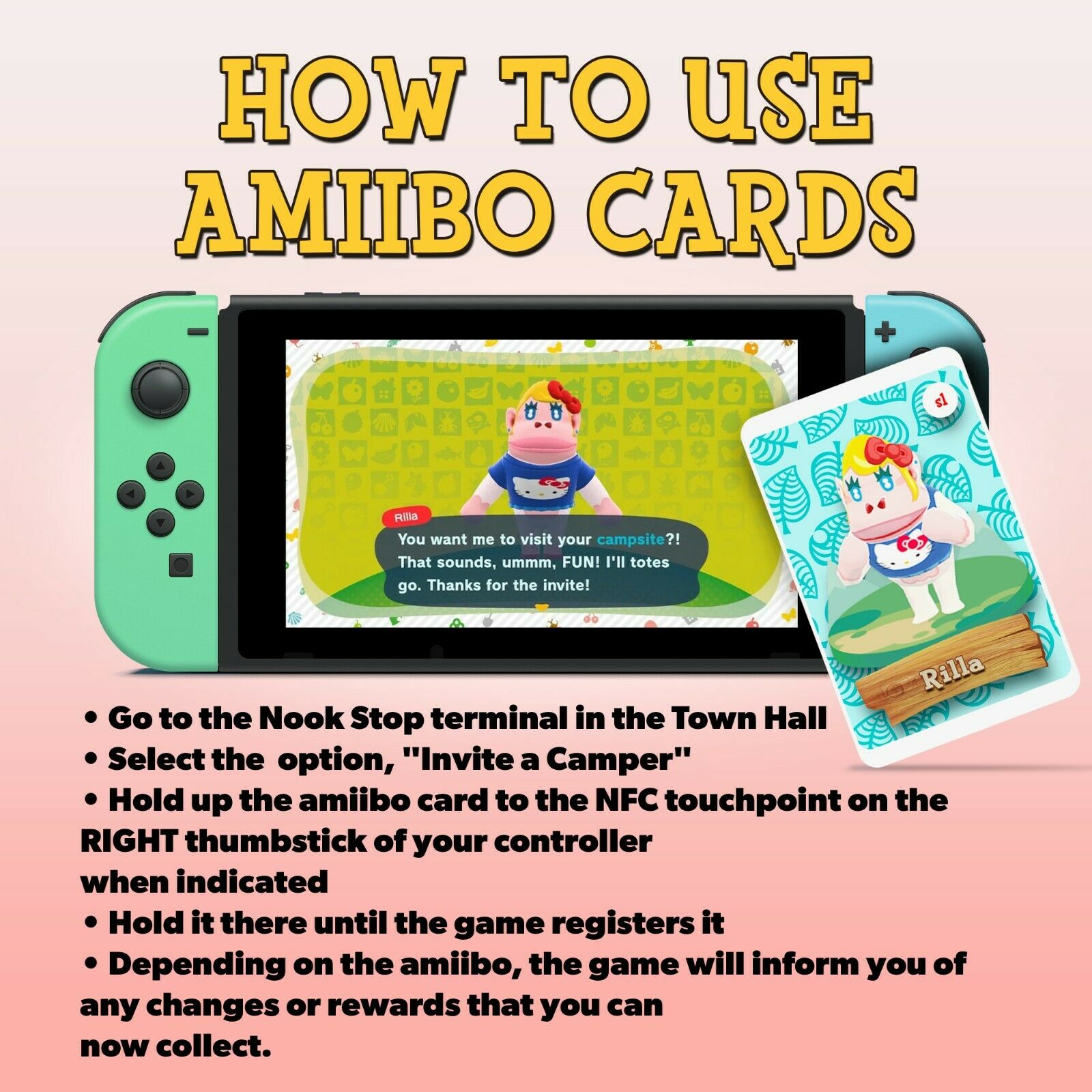 Page Title PICK YOUR VILLAGERS! Over 380 Villagers to Choose From! ➡ Please Read Description ⬅ Nearly every available VILLAGER in Animal Crossing:New Horizons and New Leaf can be YOURS ! ❤ Sanrio Series Villagers, Series 1-4, Welcome Amiibo Series, and Promo Villagers are all available ❤ You get to pick which ones you would like on your island! These are made to order! ONE FREE Villager for every FIVE Villagers ordered! (i.e. 5 + 1 Free, 10 + 2 Free, 15 + 3 Free, 20 + 4 Free, 25 + 5 Free) *Checking out with a purchase quantity of 5 cards means you will be receiving 6 cards in total* IMPORTANT: Message me after checkout with the names of your desired Villagers. Do not forget to include your FREE Villager's name (if applicable). If not, one will be randomly chosen for you. UNFORTUNATELY, THE FOLLOWING VILLAGERS DO NOT HAVE AN AMIIBO YET: Audie, Cyd, Dom, Judy, Megan, Raymond, Reneigh, and Sherb These Amiibo cards allow you to scan your favorite Villager onto your island and kick your unwanted villagers out (if your island is full). After three days of talking to the Amiibo villagers on the island, they will officially move into your island! ❤FREE Animal Crossing Leaf Decal Sticker with EVERY ORDER!❤ We use high quality PVC plastic cards with a Laser Printed High Resolution Graphic label of your Villagers image affixed to identify it. Please Note: These are custom handmade items, with high quality image resolution. They are third party items that scan into your gaming device exactly like the originals. Each card will bear graphics created by our shop, so they will be one of a kind! The intended purpose, which is to summon a villager, is 100% the same regardless of the image used . SHIPPING and HANDLING Card Qty Shipping Fee Tracking 1-3 FREE USPS ✖ 4-20 FREE USPS ✔ 20+ FREE USPS Priority ✔ 1-3 *Upgrade to First-Class or Priority Shipping ✔ REVIEWS TROUBLESHOOTING If you are unable to register the amiibo , try the following: Restart the console by holding down the POWER Button for three seconds, then select "Power Options" > "Restart." Reset the amiibo data. Try registering a different amiibo "FAILED TO READ AMIIBO" = This message usually requires a restart or an update may be needed. *Please reach out to our store if any cards do not scan. There is always the possibility of data loss due to exposure of extreme static electricity and magnetic fields during shipping.