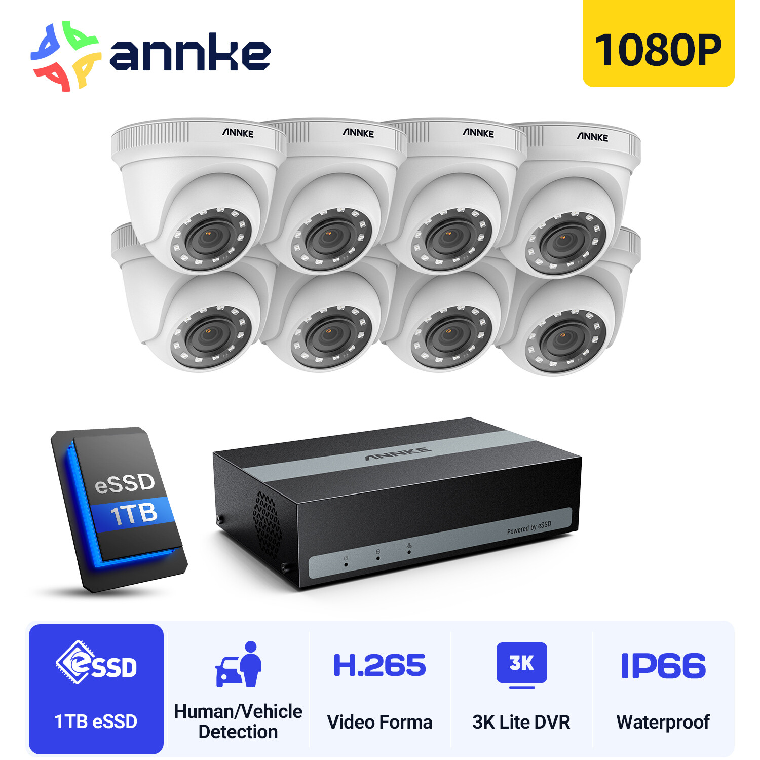 ANNKE Home Surveillance 1080P TVI Camera System 5MP TVI Camera System 4K TVI Camera System 5MP POE Camera System 4K POE Camera System 12MP POE Security Camera Kits Wireless IP Camera System SANNCE Home Surveillance 1080P TVI Camera System 1080P ColorVu Camera System 5MP TVI Security Camera System 3MP POE Camera System 5MP POE Camera System 8MP POE Camera System Wireless Camera System CCTV Camera DVR/NVR CCTV Accessories POE IP Security Cameras ebay2023 ANNKE 8+2CH 3K Lite DVR 1TB eSSD 1080p Camera Eco-friendly and Energy-efficient Superb 1080P Brings Unusual Visual Experience 1920*1080 resolution helps you capture finer details and deliver vivid pictures, no worry about missing any details.This DVR also supports smart search & quick locate, which helps you quickly find what you want in loads of videos and find the vital clips just in several sec, achieving efficient playback. Smart Human & Vehicle Detection Motion detection 2.0, which is deep learning-based human/vehicle smart detection with up to 99% accuracy, extremely reduces false alarms caused by leaves, light, animals, etc. Plus, it can locate essential clips with a quick smart search and efficient playback. Built-in 1TB eSSD The eSSD DVR can store about 2 weeks videos for 8-ch analog cameras(default parameter), with no HDD installation anymore, which not only offers a high degree of reliability even in extreme operating conditions, but also has an extended service life with less maintenance, helping you save money and time. IP66 & High-Quality ABS Housing Boasting an IP66 rating, this rugged camera is built with industrial-grading quality ABS, which can endure anything from torrential downpours or freezing to broiling temperatures(-40°F - 140°F). 100ft EXIR Night Vision & Smart IR This DVR adapts deep learning-based human/vehicle smart detection of motion 2.0 with up to 99% accuracy, extremely reducing false alarms caused by leaves, light, animals, etc. Plus, it can locate essential clips with a quick smart search and efficient playback. Exceptional Scene-Adaptive Bitrate Tech This eDVR allocates a higher bitrate to ensure higher video quality when it analyzes an area with humans/vehicles. On the contrary, a low-complexity scene with less or no motion will generate a lower bitrate stream. Amazing Ultra-low Power Consumption An estimate shows that eDVR can reduce your energy consumption by nearly 45% compared with the traditional DVR, which is equivalent to all energy absorbed by a mature tree in 1 year. It's eco-friendly and energy-efficient, benefiting your wallets. Advanced H.265 Video Format H.265 outshines in longer recording time with less bandwidth consumption compared with H.264, which helps you make full use of the storage space, enjoying 24/7 non-stop recording and reliable security. Five-in-One Compatibility This DVR supports 3K@20fps TVI cams, 5MP TVI/AHD/CVI 20fps/CVB cameras, and 2-ch 6MP IPC video inputs. Meanwhile, Coaxial audio camera access is synchronized with the same cable to transmit video signals and audio signals, without additional audio cables.(5MP 12.5fps cams are not supported) Remote Access & Email/APP Alarms Pushes With the free ANNKE Vision Client & App, no matter whether smartphones, tablets or laptops, remote access is becoming reachable. Additionally, it will push app notifications and email alerts instantly to you when detect any difference. Compact Size&Portable Mode for All Occasions The camera is compact size, and the palm-size fits any occasion no matter whether in your home or workplace. DVR DVR Video Compression H.265 Pro/H.265/Scene-Adaptive Bitrate Control coding Video Input 8CH Analog HD/Analog + 2CH IP (each up to 5 Mbps) Video Output HDMI/VGA up to 1080p/60 Hz Audio Input/Output 8-ch via coaxial cable/1-ch via HDMI Supported Camera Types 1)TVI Input: 3K@20fps,5 MP@20 fps, 4MP@30/25fps,,1080p@30/25 fps, 720p@60/50/30/25 fps; 2)AHD Input: 5 MP@20 fps, 4MP@30/25fps,,1080p@30/25 fps, 720p@30/25 fps; 3)CVI Input: 5 MP@20 fps, 4MP@30/25fps,,1080p@30/25 fps, 720p@30/25 fps; 4)CVBS: Support Analog HD Playback Resolution Main stream: When 1080p Lite mode not enabled: For 5 MP stream access: 5 MP Lite@12 fps; 4 MP Lite/1080p@15 fps; 720p/WD1/4CIF/VGA/CIF@20 fps For 1080p stream access: 1080p/720p@15 fps; WD1/4CIF@25 fps (P)/30 fps (N) For 720p stream access: 720p/WD1/4CIF@25 fps (P)/30 fps (N) When 1080p Lite mode enabled: 5 MP/3K Lite@12 fps; 4 MP Lite/@15 fps; 1080p Lite/720p/WD1/4CIF@25 fps (P)/30fps (N) IP Camera Input 2-CH IPC Recording Resolution Up to 6MP IPC Playback Resolution Up to 6MP Max Playback Channel 4CH Motion Detection 2.0 (Human/Vehicle Analysis) Up to 8CH, Deep learning-based motion detection 2.0 is enabled by default for all analog channels, it can classify human and vehicle, and extremely reduce false alarms caused by objects like leaves and lights ONVIF Support Network Total Bandwidth 96 Mbps,Incoming bandwidth: 8 Mbps Remote Connection 64 Network Protocol TCP/IP, DHCP, Hik-Connect, DNS, DDNS, NTP, SADP, SMTP, NFS, UPnP™, HTTPS Network Interface 1, RJ45 10/100 Mbps self-adaptive Ethernet interface Hard Drive SSD Capacity Built-in 1024 GB eSSD (960 GB available) Note: The device can store about 2 weeks videos for 8-ch analog cameras (default parameters),this estimation is for reference only. SSD Build in SSD General USB USB 2.0 X2 Working Temperature '14 °F – 113 °F/-10 °C – 45 °C Dimensions (W x D x H) 172 X 121.6 X 46 mm (6.7x4.79x1.81inch) Weight ≤0.5Kg (With eSSD,1.1lb.) Operating Power DC12V,1A , ≤ 8.2 W (With eSSD) Camera Camera Image Sensor 2MP CMOS Image Sensor Number of Infra-Red LEDs 12 Video Resolution 1920 (H) × 1080 (V) Night Vision Distance Up to 100ft/30m Signal System PAL/NTSC DNR Support Frame Rate PAL: 1080p@25fps NTSC: 1080p@30fps Wide Dynamic Range Digital WDR Lens 3.6mm IR Cut Filter Yes Min.Illumination Color:0.02 Lux @ (F1.2,AGC ON),0 Lux with IR Video Output HD BNCx1 Angle of View 82.2° Operating Temperature -40 °F – 140 °F /-40 