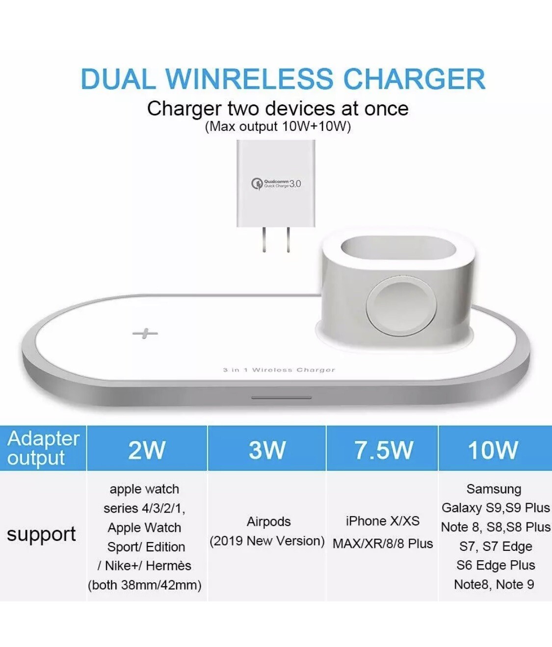 AUDON 3-in-1 Fast Wireless Charging Pad for Phone, Watch & Earbuds