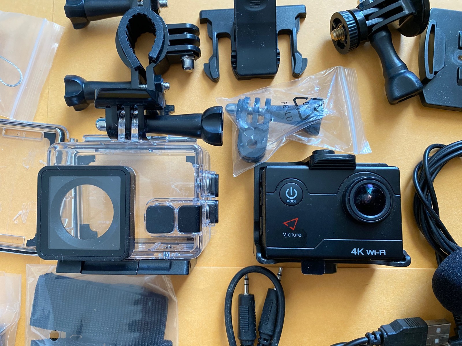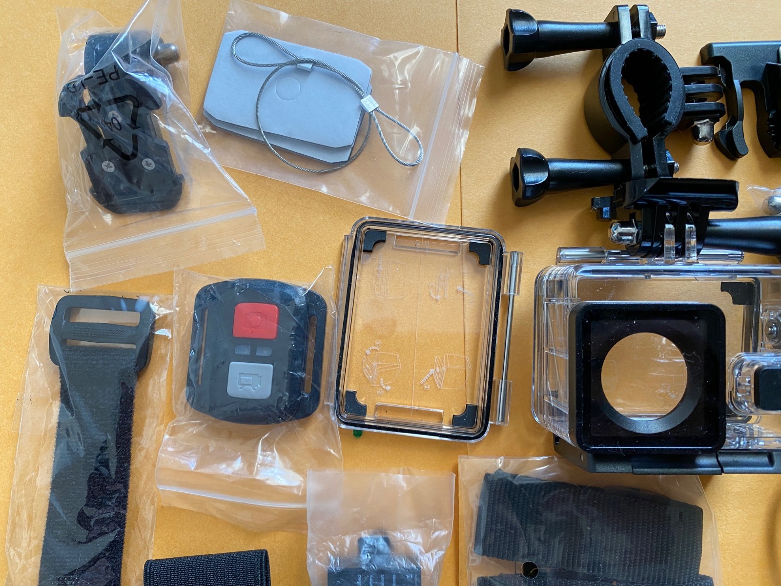 This is a 4K video camera I used only once or twice. Works perfect, comes with extra battery and underwater housing. I recently upgraded my camera so selling this one. I think I have all the accessories, including bike mount and other mounts Straps shoe mount, waterproof kit, extra battery, cables other accessories. 2GB micro-SD card inside Unfortunately, I could not find the manual