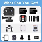 About this item 【Superb camera】With 4K resolution at 30 frames per second, the action camera offers ultra-high-definition video quality. In addition, it has a variety of recording modes. Whether you are a professional videographer or an amateur enthusiast, the 4k camera's multiple modes offer endless creative possibilities. 【Remote Control】This 4K action camera comes with a 2.4G remote control. It can be attached to helmets, bikes, or other gear. Then, you can use the remote control to operate the vlog camera for taking pictures or recording videos, which is convenient for capturing wonderful moments. 【APP Connection】This digital camera has the Wi-Fi function, you can download the APP [Go Track] to connect with the smartphone, control the video camera remotely through the smartphone, and transmit real-time video and pictures to your social platforms such as Facebook and Twitter at any time. 【Waterproof Camera】This underwater camera is equipped with a durable waterproof case that allows you to take photos at a depth of 40 meters underwater, allowing the action camera to accompany you to explore the exciting underwater world and record your wonderful moments in the underwater world. Suitable for swimming, surfing, sailing, diving, and other water activities. 【Rich accessories】This sports camera comes with a variety of practical accessories, such as 2 rechargeable batteries, a 32G SD card, etc., which further expand the usage scenarios of the camera to meet your shooting needs in various sports and activities, making your shooting experience more rich and convenient.