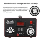 Adjustable Battery Charger 12V 24V 36V 48V 60V 72V Smart LCD Display Pulse Repair Desulfator Cable Clamps Automotive Maintainer for Golf Cart Mower Boats, PWCs Truck RV ATV SUV Everything Charger>> Design with 12V,24V,36V,48V,60V,72V voltage charging positions, you can only choose one Beleeb automotive charger for your different batteries pack like SLA, AGM, GEL, LiFePO4,lithium,deep cycle battery. It’s widely used for car, motorcycle, vehicle, RV, ATV, SUV, Golf Cart, Marine, Boat. Two charging mode>> Normal voltage (12-volt to 72-volt) charge and "H" knob charge (pulse of high-voltage onboard charge) Restore Your Battery>> Choose voltage knob "H" and set your battery charger to the lowest rate of charge ,the slower and longer you charge your lead-adid battery the more likely it is that the sulfation will be removed. restore lost battery performance for stronger engine starts and extended battery life. the "H"knob It's not just restore lost battery performance but also Equalizing charge mode, can compensate for the balance between batteries to extend the battery lifespan. Enjoy precision charging >> Select “LOW” “MEDIUM” for normal charge, “HIGH” for fast charge. The nominal theoretical Max current is: 12V-14A, 24V-12A, 36V-10A, 48V-8A, 60V-6A, 72V-4A.It’s widely used for 6-volt, 8-volt, 12 volt lead-acid in series and lithium-ion batteries with battery management systems(BMS) Connect it & Forget it >> Multi-protection&overload reset button,worry-free battery charger for everyday use - 24/7 just plug and charge, forget it . Smart trickle pulse charger build in cooling fan, over voltage protection, overcurrent protection, short circuit protection and reverse connection protection. Color Red, Black Product Dimensions 11.42"D x 9.84"W x 6.3"H Item Weight 19.96 Pounds Output Voltage 8 Volts (DC)