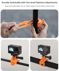 Features: 1. Unlock Unique Shooting Angles. Securely attach your camera to poles or mesh structures, such as handrail, motorcycle, bicycle, handle, rearview mirror, fishing rod, pulp board, gym and more. 2 . Durably Stretchable with Two-level Tightness Adjustments. Dual-port adjustable, fits 22-38mm pipes and 45-60mm mesh holes. 3. The camera base can rotate freely, enabling 360° rotation and 180° tilt adjustments. 4. The silicone strap is anti-tear and not easy deformed, which guarantees to tie up the camera closely. Specifications: Name: Sunnylife Flexible Mount for Action Camera Models: BD892 Material: silicone + plastic Net Weight: 54g Gross Weight: 62g Packing size: 62*54*39mm