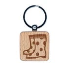 Adorable Summer Polka Dot Rain Boots Engraved Wood Square Keychain Tag Charm