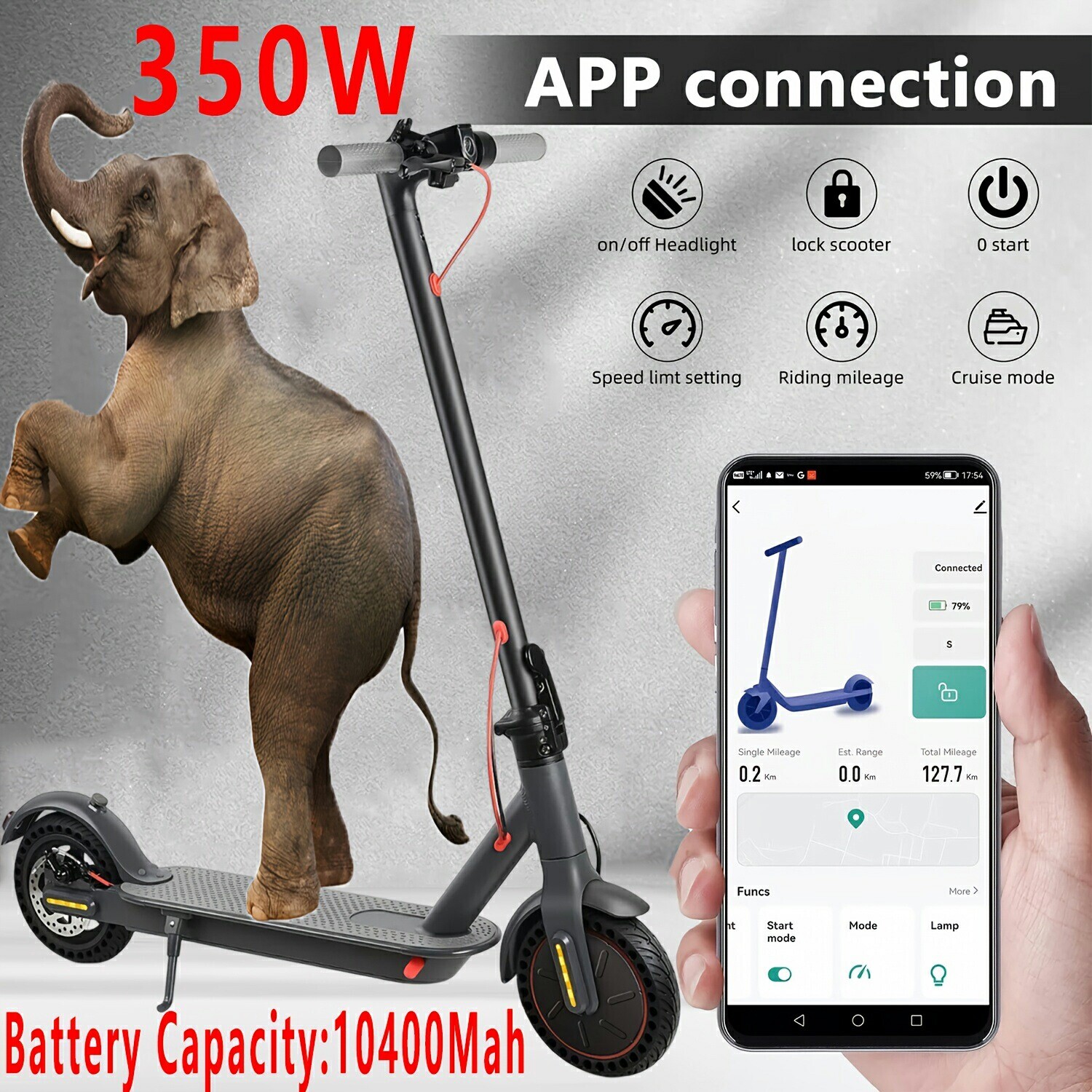 Product Description About this item: 【Powerful Motor & Long Battery Life】 Equipped with a 350W brushless motor and 8.5" solid tires, this electric scooter for adults delivers speeds up to 20MPH (by APP). The high-capacity lithium battery offers a 30KM range per charge (4-5 hours). Easily handles inclines up to 20%, perfect for urban commuting or friends meeting. Whether you're looking for a fast electric scooter, adult electric scooters, or a long range electric scooter, this model is built to meet your needs 【LED Console & App Control】Stay in control with the TUYA app via wireless. Adjust your scooter's speed, activate cruise mode, control lights, and monitor status all from your smartphone. You can even remotely lock your scooter for added security. Ideal for riders seeking a smart electric scooter or a scooter with app control, this feature offers convenience and peace of mind for everyday commuters and busy riders 【3 Speed Modes & Cruise Control】Choose from 4 speed settings ( 8MPH, 12MPH, 20MPH) to match your riding style. The cruise control function ensures a smooth ride, reducing finger fatigue. Whether you're a commuter, beginner, or speed enthusiast, this scooter offers flexibility and comfort for daily use, perfect for commuting to work, running errands, or leisurely rides. 【Dual Braking System & Smart Lights】 Equipped with electronic and drum brakes for safe, responsive braking even at high speeds. Includes a front headlight, rear brake light, and mechanical bell to enhance visibility and safety during nighttime rides. Ideal for commuters finishing work, college students after evening classes, and anyone needing a electric scooter for nighttime use. Specific: Brand: Mankeel Motor: 36V 350W Battery: 36V 10.4Ah Tire Size:8.5inches Color: Black Maximum range per charge: up to 30 km (approximately 18 miles) Default maximum speed: 15.5 mph Cruise Mode: Press and hold the accelerator for 10 seconds to activate cruise mode Maximum Load: 120kg (264lbs) Tire: 8.5 inch non-slip solid tire Charging time: 4-5 hours Waterproof Level:IPX5 Product Dimensions (open):105.41*104.83cm/41.5*41.27in Package including: 1x electric scooter 1x charger 1x user manual Warning: Laws apply to the speed and use of electric bikes and scooters in USA. We recommend you review applicable laws before purchasing this item About Us Contact Us Quality And Service Shipping Welcome to [ mankeel-electric-scooter ] ! We’re thrilled to introduce our premium collection of electric scooters and e-bikes , designed to redefine urban mobility with style, power, and sustainability. Whether you’re a daily commuter, a thrill-seeker, or a eco-conscious rider, we’ve got the perfect ride for you! 🌟 Why Choose Us? ✅ Quality & Innovation : Cutting-edge technology meets sleek design. ✅ Versatile Range : From compact scooters to high-performance e-bikes. ✅ Eco-Friendly : Join the green revolution with zero-emission commuting. ✅ Flexible Orders : Single units for personal use or bulk orders for retailers – we’ve got you covered! 🛒 Ready to Ride? Place your order today and enjoy: ⚡ Fast Shipping : Get your new ride delivered straight to your door. 🛡️ Warranty & Support : Comprehensive coverage + 24/7 customer care. 🎁 Exclusive Deals : Subscribe to our newsletter for discounts and early access to new drops! Single or Bulk – Your Journey Starts Here! Let’s electrify your ride – one scooter or bike at a time! 🔥 Tag a friend who needs an upgrade! [ mankeel-electric-scooter ] Team Powering Your Next Adventure 🚀