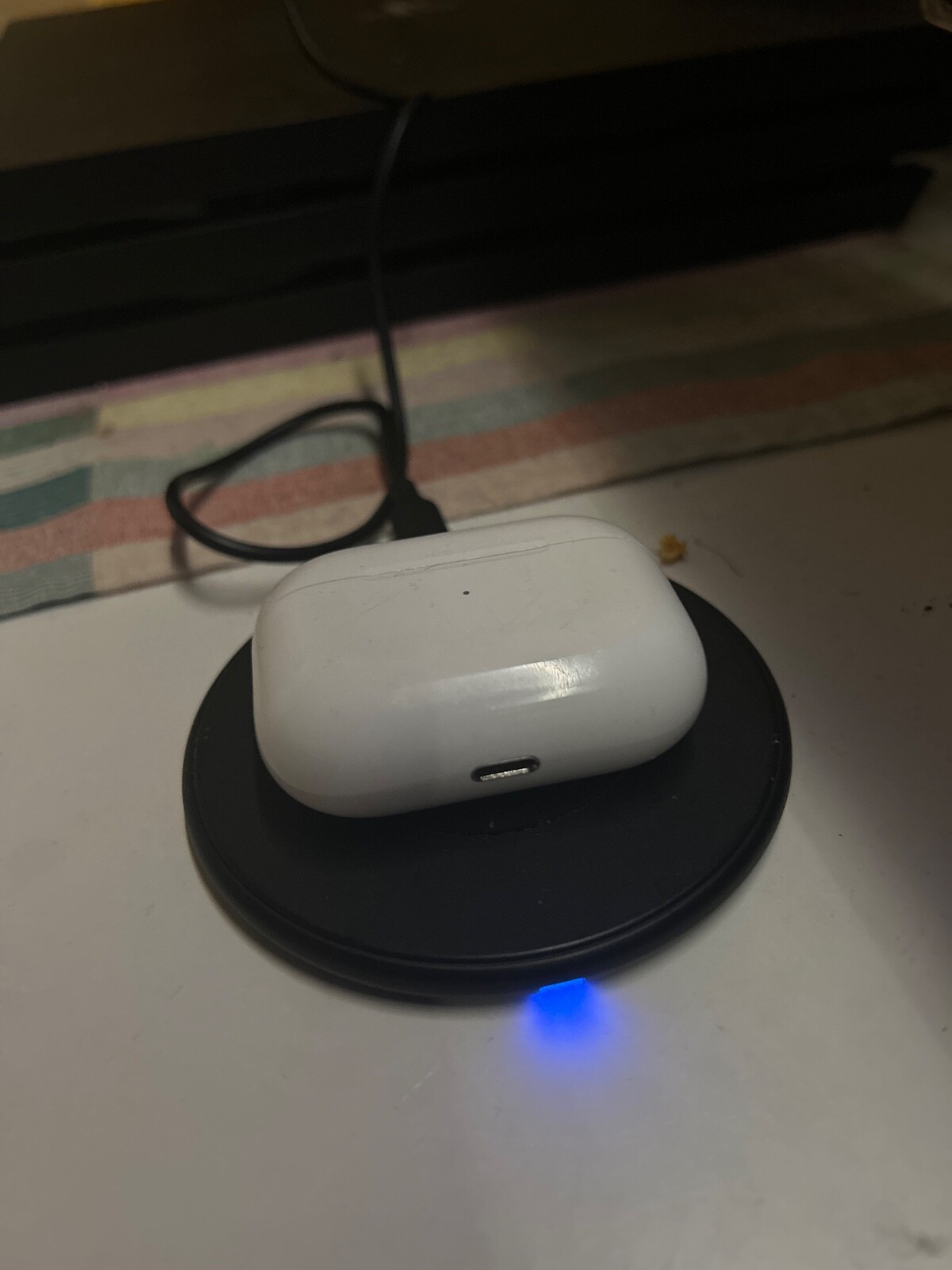 Airpods Pro Generation 2 - Only work with wireless charging (shown in picture). Features: Noise Cancellation + Transparency Head tracking Bluetooth I have had these for a little less than a year and don't find myself using them. They require a wireless charger as a regular one doesn't work. I have a case which I can provide however it is pink lol. I have this up on other platforms as well so grab this for a steal while it's available!