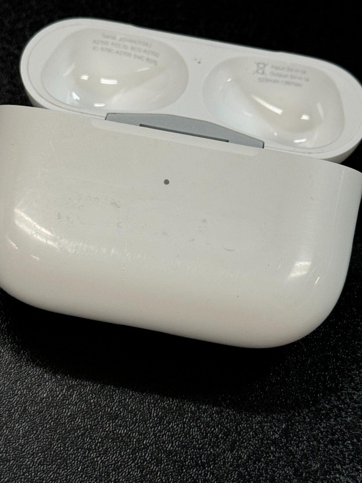 Compatibility note: These are not backward compatible with Airpods Pro 1st Generation. Please ensure your Airpods are Model number a2699, a2698, or a2700. If your old charging case did not have a lanyard loop, or a speaker cut out on the bottom of the case, this will not sync. AirPods Pro (2nd Generation) Magsafe Charging Case Replacement A2700 100% Genuine Apple. Tested, sanitized, and verified for authenticity. Pulled from open box returns from major retailers who sell Authentic Airpods. Fully Functional. Each unit is tested prior to shipping. 3-5 Business USPS First Class Shipping. Please reference our photo if you aren't sure if you have Pro 1st Generation, Or Pro 2nd Generation, as they are not compatible. Condition Used(fair) with engraving removed - These cases formerly had an engraving that have been physically removed, however will still show when set up via bluetooth. These cases will come in used condition with some marks and light dents. Contents of purchase 1x Airpods Pro (2nd Generation) Magsafe Charging Case Only. No other accessories will be included. Shipping Details The Airpod Pro Charging case (2nd Generation) will be shipped the same business day or the next depending on the time of purchase. Orders purchased on Sunday will be processed Monday. Our shipping estimate is 3-5 Business Days via USPS First Class. Sync Instructions Place both Airpods in your charging case, and charge for at least 1 hour through a wall outlet. Open the lid of the charging case and verify the light is flashing amber. Press and hold the setup button on the Airpod for 5 to 30 seconds. The light should flash white. If still flashing amber, continue to charge for another 30 minutes, then attempt this step again until flashing white. Open the case, and with your AirPods, both inserted into the charging case still, hold it next to your phone(phone needs to be unlocked) and wait for the setup animation. Select connect, and tap done Return Policy We do offer returns if you are dissatisfied with the product or if we cannot assist you in pairing the device. We always recommend sending a message first, we will do our best to respond quickly and resolve any issues.