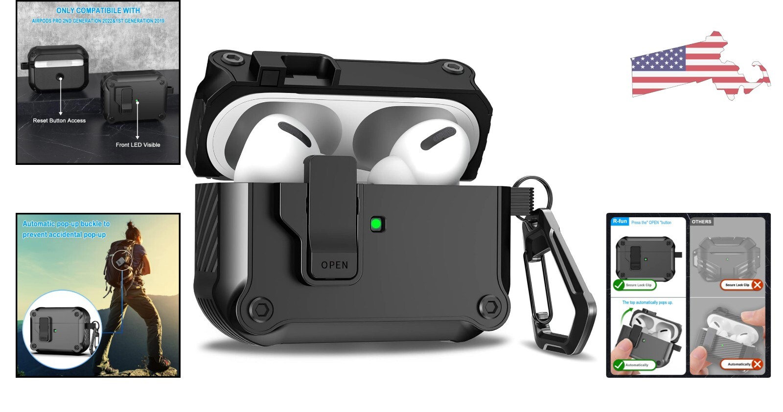 Airpods Pro Case Cover: Secure Lock Clip, Super Protective, Keychain - Black ‹ › ‹ › ‹ › ‹ › ‹ › ‹ › ‹ › ‹ › ‹ › ‹ › Airpods Pro Case Cover -Secure Lock Clip -Super Protective -Keychain - Black Features: Specially designed for Apple AirPods Pro 2nd Generation (2023/2022 Release) & 1st Generation (2019 Release). Made of military grade premium TPU material. Designed with a secure locking clip to protect your Airpods pro from daily drops, scratches, and bumps. Easy to use with secure locks and magnets for easy closure. No need to remove the case cover when charging with front LED visible. Comes with a sturdy portable carabiner for easy attachment to backpacks, keys, and belt loops. Package includes Airpods pro cover, carbon fiber carabiner, and removal tool. Benefits: Provides professional protection for your Airpods Pro. Durable and long-lasting. Convenient and easy to use. Allows for charging without removing the case cover. Prevents loss with the included carabiner. Compatible with both 2nd and 1st generation Airpods Pro. Why choose our Airpods Pro Case Cover? Protect your valuable Airpods Pro with our high-quality case cover. Made of military-grade premium TPU material, it provides superior protection against drops, scratches, and bumps. The secure locking clip ensures that your Airpods Pro stay securely in place. With the included carabiner, you can easily attach your Airpods Pro to your backpack, keys, or belt loops, preventing loss. Plus, the case cover is designed to allow for easy charging without the need to remove it. Choose our Airpods Pro Case Cover for professional protection and peace of mind. Order yours today and keep your Airpods Pro safe and secure! Shipping Free & Fast Shipping - We offer free shipping to most of the USA with a normal delivery time of 3-7 days. However, due to the current situation, additional delivery time (up to 3 weeks) may be required for some items. Alternative Carriers - We may use alternative carriers (e.g. USPS, FedEx, UPS, etc.) to ensure your package arrives safely and on time. Due to the use of multiple carriers, we are unable to provide a tracking number automatically. Handling Time - Orders are processed and shipped within 1-2 business days of receiving cleared payment. Shipping Restrictions - Shipping to Alaska, Hawaii, Puerto Rico, Guam, and other US territories may incur shipping charges or delivery restrictions. Please contact us before ordering, or your order can be refunded/cancelled. State Restrictions - There may be restrictions based on your state of purchase. For example, certain items may not be shipped to California due to state regulations. Contact for Tracking Updates - If you require tracking updates or have any concerns about the delivery of your order, please feel free to contact us, and we will be happy to assist you. Return 30-Day Hassle-Free Returns - We want you to be completely satisfied with your purchase. If you are not, you can return the item within 30 days of receiving it for a full refund or exchange. Easy Return Process - To start a return, simply contact us and we will provide you with a prepaid return shipping label and detailed instructions. Restocking Fee - There are no restocking fees for returns. However, the buyer is responsible for return shipping costs if the return is not due to a seller's error. Refund Processing Time - Refunds will be processed within 5 business days of receiving the returned item in its original condition. Payment We accept all major credit cards, PayPal, and Apple Pay for your convenience. Your payment information is secure and encrypted to ensure a safe and seamless transaction. Please complete your payment within 3 days of purchase to avoid any delays in shipping. Feedback Your feedback is extremely important to us. We strive to provide the best products and customer service possible. If you are satisfied with your purchase, please take a moment to leave us a positive review. If you have any concerns or issues with your order, please contact us before leaving negative feedback. We are committed to resolving any problems and ensuring your satisfaction. Contact Us If you have any questions or concerns, please feel free to reach out to our customer support team. You can contact us through the eBay messaging system. We are available Monday to Friday, 9:00 am to 5:00 pm EST, and we will do our best to respond to your inquiry within 24 hours. Thank you for supporting our small family business!