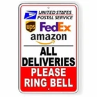 Available As An Aluminum Sign / Magnetic Sign / Vinyl Decal Aluminum Signs Are Available In Five Versions 5" x 7" / 8" x 12" / 12" x 18" Treated With Ultra UV Protection To Prevent Fading Printed directly onto the metal sign Signs do not have stickers, decals, paint or vinyl lettering Won't fade, crack, peel, chip or rust. 5" x 7" (.025 thickness) Signs have square corners, two strips of mounting tape and no holes 8" x 12" (.025 thickness) Signs have rounded corners and are available in TWO OPTIONS AVAILABLE WITH 1/4" MOUNTING HOLES ALSO AVAILABLE WITHOUT MOUNTING HOLES BUT MOUNTING TAPE IS ATTACHED TO THE BACK OF THE SIGN 8" x 12" (.032 thickness) Signs have rounded corners and two 1/4" mounting holes 12" x 18" (.032 thickness) Signs have rounded corners and two 1/4" mounting holes Decals are 4" X 6" Vinyl decals do not have holes Printed with eco-solvent ink guaranteed to last 5 to 7 years Decals are shipped USPS First Class Mail with tracking CUSTOM DESIGN DECALS ALWAYS AVAILABLE Magnetic Signs Offer The Option Of Being Removable You can display the sign on your garage door or front door when you are expecting a delivery and then remove it when no delivery is expected Perfect if you'd prefer not to have a sign mounted permanently Magnetic signs are 7" x 10" or 5" x 7" and have no holes PLEASE CHECK TO MAKE SURE THAT MAGNETS STICK TO THE AREA THAT YOU PLAN TO USE THE MAGNETIC SIGN Some doors are aluminum and the signs may not stick
