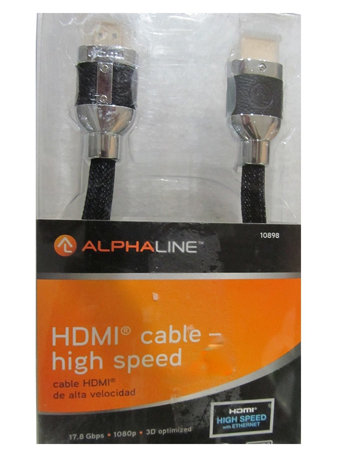 Alphaline High Speed 3' HDMI Cable 17.8 Gbps Model 10898 The 3 Ft. HDMI Cable –Easy and Flexible Connections for High-Quality Entertainment With the ability to transfer uncompressed high-definition video and digital audio in resolutions up to 4K, this 3 ft. HDMI cable brings you crystal-clear visuals and acoustics that are uncannily lifelike. The cable is small and versatile making it perfect for smooth installation and in-wall use, and can be used easily with your HDTV's, DVD players, game consoles, cable and satellite set top boxes and DVRs. And since all this is possible in just a single cable, there’s less confusion of wires resulting in a cleaner entertainment center. Making movies and games come alive with stunning clarity, this HDMI cable delivers premium signals drawing from HDTVs and digital AV sources. This cable is shielded against distortion and features corrosion-resistant connectors known for transmitting optimal signals. Invest in this high definition cable because when it comes to pampering your senses, nothing but the best will do. · The 3 Ft. HDMI Cable helps you make easy, flexible connections for high-speed transmission and high-quality entertainment · Premium signal quality delivers a crisp picture and high-resolution sound from HDTVs and digital AV sources · HDMI® Ethernet channel technology for the ultimate music, movie and gaming experience · Stunning visuals and sound from one cable · Plated connectors ensure optimal signal · 4K resolution support, 3D optimized · Audio return channel · 99.99% oxygen free copper and nylon mesh shielding · Limited lifetime warranty · 17.8 Gbps rating for ultra-fast speed