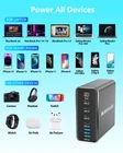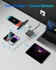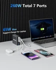7-in-1 USB C Charger: This usb c charger block provides 7 charging wattage options with 5 USB-C ports and 2 USB-A ports. Such a usb c multiport charger can handle all your devices at fast speed with a total output up to 260W. What's cool is that you can charge two laptops with our top two usb c ports of 65w. Sleek USB C Charger: MEKIOJEO usb c charging station is finished with anti-slip aviation aluminum alloy shell, so even you plug in multiple devices it can stand on the desktop, dresser and nightstand. It won't move or flip easily than those of cheap plastic outer shell. No more hunting for outlets or lugging around a bunch of chargers when travel, much simplify your life. Multiport USB C GaN Charger: Say goodbye to tangled cables and messy clutter. This all in one type c charger fast charging significantly meets your daily charging needs. 65w port can act as a usb c laptop charger to power your laptops like MacBook Pro/Air etc. Extra 3 options like 30w, 20w and 15w are strong enough to fast charge iphone 14 Pro, S23 Ultra, iPad Pro and more at the same time without anything overheating! 7 MultiProtect Safety Systems: Our 260w usb c charger block is equipped with enhanced surge protector: Temperature Protection, Over-Current, Over-voltage, Overcharge, Overload, Overheat and Short circuit. The certification authority of our usb-c charger is in line with safety certifications, ensuring 100% for you and your device's protection. Compact & Versatile: This usb c GaN charger is smart by automatically distributing the correct amount to each device with accompanying 5ft/1.5m power strip. The built-in intelligent charging GaN chip in this usb c charger switches to trickle charging mode when the battery is fast full, protecting the long service life of battery with better heat dissipation.