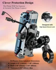 Wireless Charging: The motorcycle phone mount Qi 15W wireless charger compatible with all Qi 15W / 10W / 7.5W / 5W wireless charging modes on the market. Input: DC 12V. IP66 waterproof Two Ways to Get Power: The package comes with SAE and USB harnesses. You can use the SAE harness to connect the phone holder to the motorcycle electric door lock or battery to get power. The motorcycle cell phone mount can also be connected to the USB port with fast charging protocol to obtain power through the USB harness Please note: When connecting to a motorcycle battery as input, the motorcycle battery cannot exceed 16V; when connecting to a USB port as input, the USB port must have fast charging protocol Sturdy & Secure: Main body made of 6061-T6 aluminum alloy. This motorcycle phone mount equipped with vibration dampener. Adopts aluminum alloy handlebar mounting base & double socket arm. The double socket arm is designed with special safety knob. The package comes with a special wrench to tighten the safety knob. This design keeps your phone holder from being easily removed One-Handed Operation: The motorcycle handlebar cell phone holder adopts one-push automatically lock and quick release design. Put in or take out your phone with just one hand in one second, very convenient. 720 degree free rotation design, can be easy to adjust the mobile phone to horizontal or vertical screen. Enjoy a free and easy riding Shockproof Protection: The motorcycle handlebar cell phone mount also built-in with soft silicone that keep your phone from scratches and vibration. Handlebar phone mount & phone camera features a non-contact designed to keep the phone camera from being squeezed and scratched while riding Easy To Install: Accessories included with the package allow this cell phone mount easy to attach to handlebars and rear-view mirror. The motorcycle phone holder handlebar mounting base fit for handlebars 0.5''(12mm) / 0.87''(22mm) / 1.0''(25.4mm) / 1.26'' (32mm) in diameter. Package also includes aluminum alloy 1'' ball rear-view mirror mounting base. Convenient for you to install the phone holder on the motorcycle mirror Wide Compatibility: With an adjustable design, the body size of the motorcycle phone holder can be adjusted according to the size of your phone. This Motorcycle Phone Mount Holds Phones (Case Included) Dimensions: Length 5.12'' (130mm) ~ 7.28'' (185mm), Width 2.48'' (63mm) ~ 3.54'' (90mm), Thickness 0.787'' (20mm ) Max. Suitable for installation on bike, bicycle, motorcycle, stroller, mountain bike, dirt bike, trek bike, road bike, golf cart, electric scooter, ATV, etc. Anti Shake, Protect Your Phone: The special structure of this motorcycle phone mount can tightly wrap your smartphone. Designed with high-speed secure lock: After putting your phone in, tighten the knob on the back of this motorcycle phone mount, make sure your mobile phone is securely attached to the motorcycle phone holder even when riding at high speed on bumpy roads