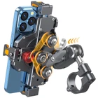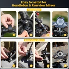 【Sturdy & Secure】 This motorcycle phone mount is made of 6061-T6 aluminum alloy. Adopts aluminum alloy handlebar mounting base & double socket arm. The double socket arm is designed with anti-theft safety knob. The package comes with a special wrench to tighten the safety knob. This design keeps your phone holder from being easily removed 【Double-layer Shockproof Protection】 The motorcycle handlebar cell phone mount is built with soft silicone and equipped with a dual vibration dampener to effectively reduce damage caused by motorcycle riding vibrations on mobile phones and phone cameras. It safeguards your phone camera. The handlebar phone mount and phone camera feature a non-contact design, preventing the phone camera from being squeezed and scratched during rides 【Anti-Shake, Phone Protection】The rear of the motorcycle phone holder is equipped with a red high-speed secure knob,after placing your phone, tighten the knob on the back of this motorcycle smartphone mount to ensure a secure attachment, even when riding at high speeds on uneven roads 【One-Handed Operation】The atv handlebar cell phone holder features a one-push automatic lock and quick-release design. Easily insert or remove your phone with just one hand in one second, making it extremely convenient. The double-balled articulating arm provides lots of flexibility for angling and getting in the right place. With a 720-degree free rotation design, adjusting the smartphone to a horizontal or vertical screen is effortless. Enjoy a free and easy riding experience 【Easy to Install】Accessories included in the package make it easy to attach this cell phone mount to handlebars and rear-view mirrors. The motorcycle phone holder handlebar mounting base is suitable for handlebars with diameters of 0.5'' (12mm), 0.87'' (22mm), 0.94'' (24mm), 1.0'' (25.4mm), and 1.26'' (32mm). The phone holder mount is also compatible with smartphones ranging from 5.8 to 7.2 inches