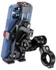 Sturdy & Secure: Main body made of 6061-T6 aluminum alloy. This motorcycle phone mount equipped with vibration dampener. Adopts aluminum alloy handlebar mounting base & double socket arm. The double socket arm is designed with special safety knob. The package comes with a special wrench to tighten the safety knob. This design keeps your phone holder from being easily removed One-Handed Operation: The motorcycle handlebar cell phone holder adopts one-push automatically lock and quick release design. Put in or take out your phone with just one hand in one second, very convenient. 720 degree free rotation design, can be easy to adjust the smartphone to horizontal or vertical screen. Enjoy a free and easy riding. Shockproof Protection: The bicycle phone mount also built-in with soft silicone that keep your phone from scratches and vibration. Phone bike mount & phone camera features a non-contact designed to keep the phone camera from being squeezed and scratched while riding Easy To Install: Accessories included with the package allow this cell phone mount easy to attach to handlebars and rear-view mirror. The motorcycle phone holder handlebar mounting base fit for handlebars 0.5''(12mm) / 0.87''(22mm) / 1.0''(25.4mm) / 1.125''(28.6mm) / 1.26''(32mm) in diameter. Package also includes aluminum alloy 1'' ball rear-view mirror mounting base. Convenient for you to install the phone holder on the motorcycle mirror Wide Compatibility: With an adjustable design, the body size of the motorcycle phone holder can be adjusted according to the size of your phone. This Motorcycle Phone Mount Holds Phones (Case Included) Dimensions: Length 5.12'' (130mm) ~ 7.28'' (185mm), Width 2.48'' (63mm) ~ 3.54'' (90mm), Thickness 0.787'' (20mm ) Max. Suitable for installation on bike, bicycle, motorcycle, stroller, mountain bike, dirt bike, trek bike, road bike, golf cart, electric scooter, ATV, etc. Anti Shake, Protect Your Phone: The special structure of this motorcycle phone mount can tightly wrap your smartphone. Designed with high-speed secure lock: After putting your phone in, tighten the knob on the back of this motorcycle phone mount, make sure your mobile phone is securely attached to the motorcycle phone holder even when riding at high speed on bumpy roads