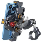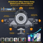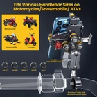 【Sturdy & Secure】 This motorcycle phone mount is made of 6061-T6 aluminum alloy. Adopts aluminum alloy handlebar mounting base & double socket arm. The double socket arm is designed with anti-theft safety knob. The package comes with a special wrench to tighten the safety knob. This design keeps your phone holder from being easily removed 【Double-layer Shockproof Protection】 The motorcycle handlebar cell phone mount is built with soft silicone and equipped with a dual vibration dampener to effectively reduce damage caused by motorcycle riding vibrations on mobile phones and phone cameras. It safeguards your phone camera. The handlebar phone mount and phone camera feature a non-contact design, preventing the phone camera from being squeezed and scratched during rides 【Anti-Shake, Phone Protection】The rear of the motorcycle phone holder is equipped with a red high-speed secure knob,after placing your phone, tighten the knob on the back of this motorcycle smartphone mount to ensure a secure attachment, even when riding at high speeds on uneven roads 【One-Handed Operation】The atv handlebar cell phone holder features a one-push automatic lock and quick-release design. Easily insert or remove your phone with just one hand in one second, making it extremely convenient. The double-balled articulating arm provides lots of flexibility for angling and getting in the right place. With a 720° rotation design, adjusting the smartphone to a horizontal or vertical screen is effortless. Enjoy a pleasant and easy riding experience 【Easy to Install】Accessories included in the package make it easy to attach this cell phone mount to handlebars and rear-view mirrors. The motorcycle phone holder handlebar mounting base is suitable for handlebars with diameters of 0.5'' (12mm), 0.87'' (22mm), 0.94'' (24mm), 1.0'' (25.4mm), and 1.26'' (32mm). The phone holder mount is also compatible with smartphones ranging from 5.8 to 7.2 inches