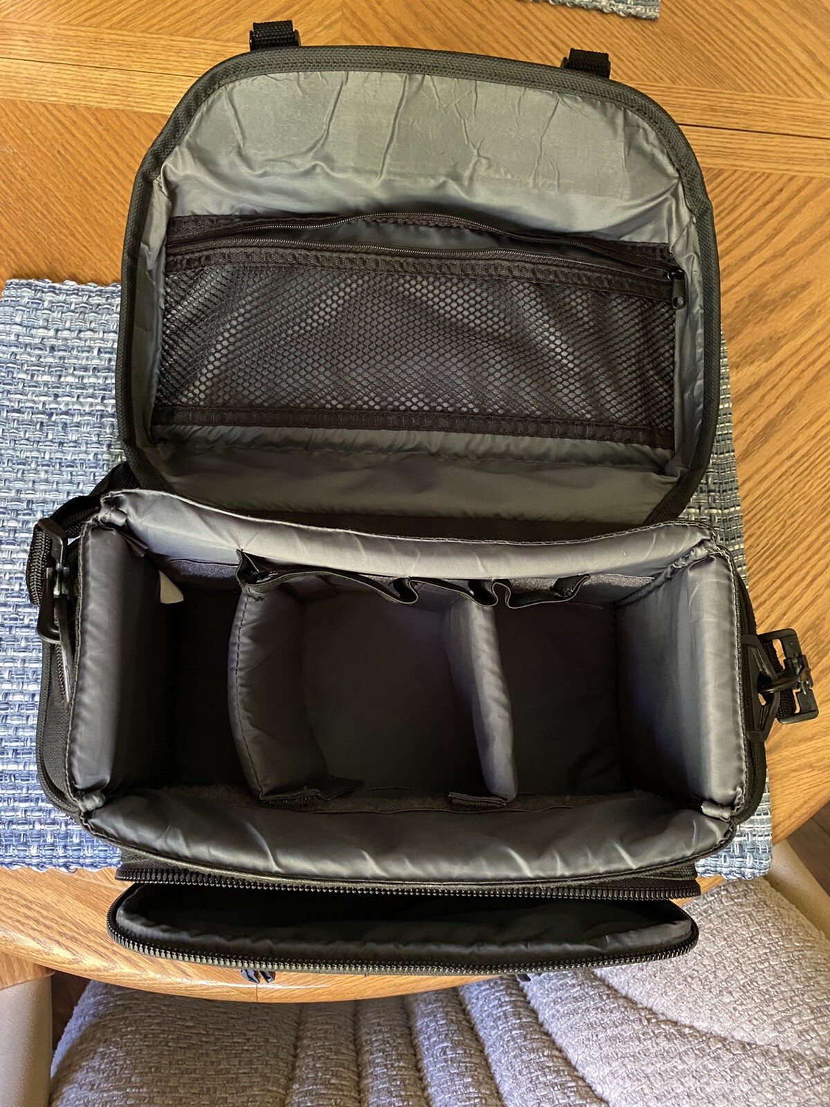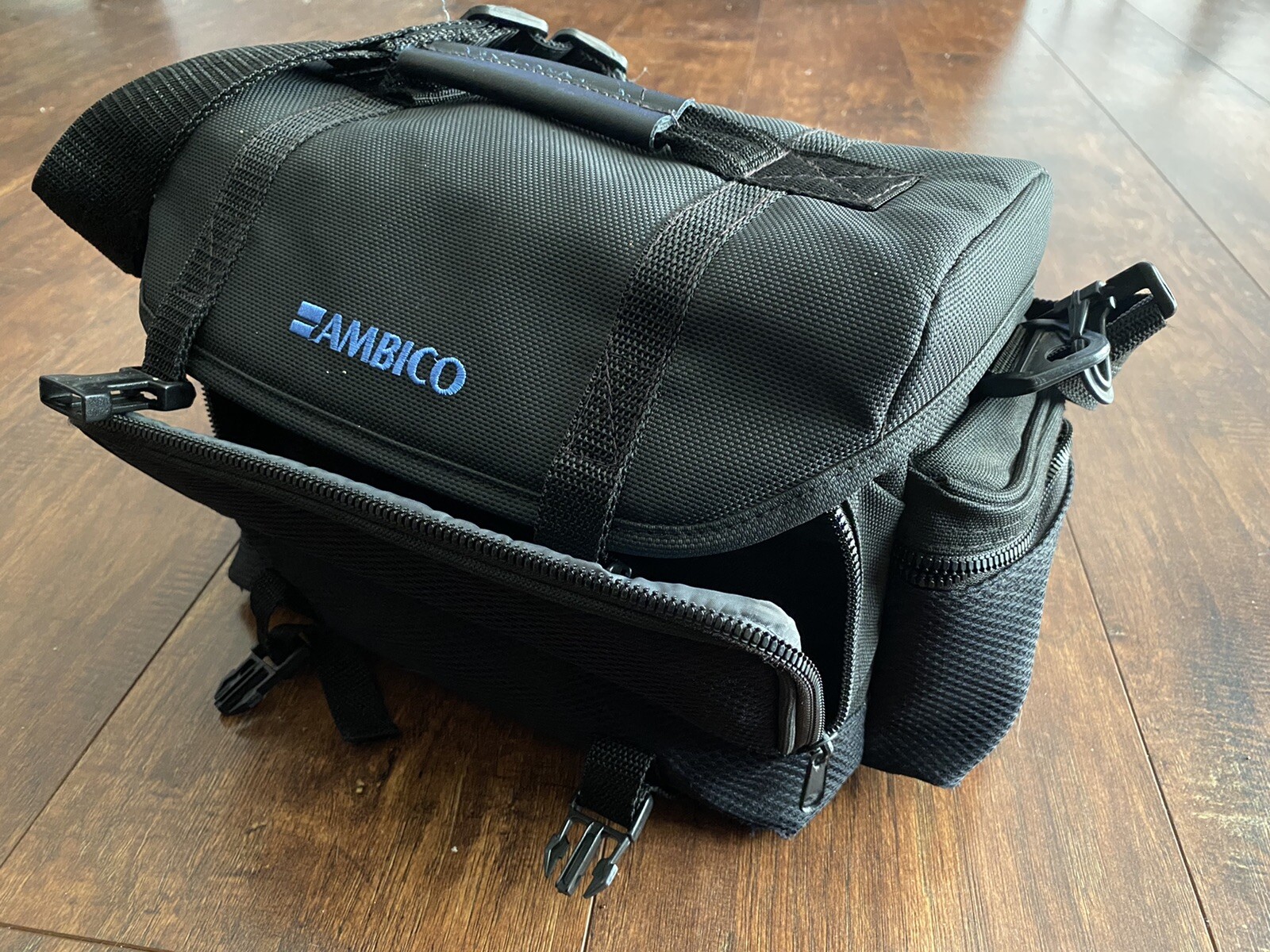 Ambico Camcorder/Camera Bag With Velcro Adjustable Compartments - Very Good Condition. This camera bag can fit most camcorders and DSLR cameras along with a lens, flash, or microphone The item is used but in good condition and has multiple zippered compartments for tons of accessories. It has kept my stuff safe for multiple outings the past couple years but I no longer need it so I want it to go to someone who will actually use it instead of sitting in a closet