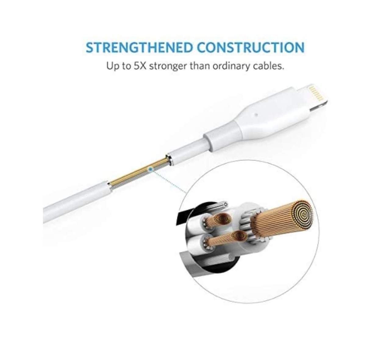 Anker PowerLine Lightning Cable (10ft) Black MFI Certified for iPhone 11 X 8 8 Plus 7 7 Plus 6 Plus (FAST CHARGING) How many Lightning cables have you had to buy before? Next time, make sure it’s PowerLine. Ultra-Durable: Aramid fiber makes it thoroughly resistant to fraying and wear-related damage. Incredible Charging Speed: Wide-diameter wires and reduced cord resistance maximize charge speed. Flexibility: Ten feet of cable give you the flexibility you need. What You Get: 1 Anker PowerLine Lightning, hook-and-loop cable tie, our worry-free 18-month warranty and friendly customer service. PowerLine Lightning The fast and durable Lightning cable. Strengthened Construction A first for USB charging cables, the Anker PowerLine is reinforced with bulletproof aramid fiber. That makes it much stronger than conventional cables. Heavy Duty for Heavy Use We've reinforced PowerLine with bulletproof aramid fiber-a first for a USB charging cable. We've bent this cable over 5000 times and observed no damage or change in performance. Faster Charging With wide-diameter wires and reduced cord resistance, PowerLine Lightning provides the fastest possible charge any USB charger is capable of. Flexibility With the 10-foot PowerLine Lightning, you don't have to sit near a power outlet as you charge your device. Instead, you have the flexibility to set up your work environment as you prefer. Works With: iPhone 11 X / 8 / 8 Plus / 7 / 7 Plus / 6s / 6s Plus / 6 / 6 Plus / 5s / 5c / 5 iPad Air / Air 2 / Pro, iPad mini / mini 2 / mini 3 / mini 4, iPad (4th generation) iPod nano (7th generation) and iPod touch (5th / 6th generation)