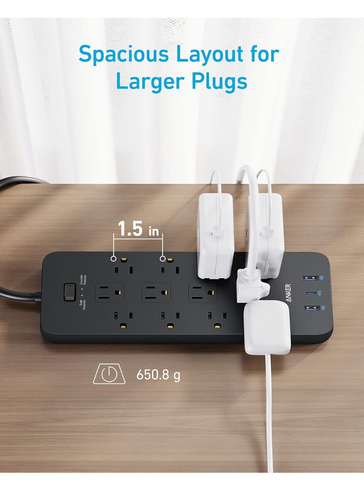 Store New Arrivals Add to Favorite View Feedback Contact Surge Protector Power Strip (2100J), 12 Outlets with 1 USB C and 2 USB Ports Foriphone 15/15 Plus/15 Pro/15 Pro Max, 5Ft Extension Cord, Flat Plug, 20W USB C Charging for Home, Office,Tuv Listed Description Item model number A9192 Color Black Product Dimensions 13"L x 4.13"W Item Weight 1.4 pounds Total Power Outlets 15 Department womens Manufacturer Anker Special Feature function(f) {var _np=(window.P._namespace("DetailPageProductOverviewTemplatesJava"));if(_np.guardFatal){_np.guardFatal(f)(_np);}else{f(_np);}}(function(P) { P.when('A').execute(function(A){ A.on('a:truncate:po-attribute-truncate-3:updated', function(data) { var isTruncated = !data.truncateInstance.getIfTextFits(); var seeMoreElement = document.getElementById('po-attribute-see-more-id-3'); if(seeMoreElement) { seeMoreElement.style.display = isTruncated ? '' : 'none'; } }) }); })); Surge Protection, Usb Slot, Braided Extension Cord, Overload Protection, Fast Charging, Flat Plug, Mountable See more Brand Anker Size 5 FT All the Power You Need: Features 12 AC outlets, 1 USB-C port, and 2 USB-A ports to give you everything you need to power up all of your appliances and mobile devices. Fast Charge Your iPhone: Use the 20W USB-C port to give your iPhone 13 a high-speed charge from 0-53% in just 30 minutes. 8-Point Safety System: Combines surge protection, fire resistance, overload protection, temperature control, and more to protect you and your devices. Optimized Layout: Designed with extra space between outlets to accommodate even the largest plugs. What You Get: 351 Power Strip, 2 mounting screws, welcome guide, our worry-free 18-month warranty, lifetime* $200,000 connected equipment warranty, and friendly customer service. Product Description 1 20W USB-C Fast Charging 2 Easy Wall Mounting 3 Space For Larger Plugs 1 Single-Port 2 Two-Port 3 Three-Port Model Number: A9192 USB-C and USB-A Output: USB-C: 5V 3A/9V 2.22A/12V 1.67A (20W max) USB-A: 5V 3A (2.4A max per port); 2 USB-A ports and 1 USB-C port share 5V 3A Dimensions: 24.5 × 10.6 × 2.6 cm Weight: 650.8 g Note 1: 20W USB-C charging is only available when the 2 USB-A ports are not in use. Note 2: If you have a USB-A to Lightning or USB-A to MagSafe cable connected to the USB-A port, please disconnect and then reconnect the cable before charging. Note 3: The USB-A port does not support Quick Charge 3.0. Devices equipped with Quick Charge, such as the Galaxy series, will charge at regular speed. Note 4: Quick Charge and Power Delivery technologies are not supported on the USB-C port when using both ports simultaneously. Note 5: The USB ports of this product are not compatible with laptops. ABOUT US We offer the best prices around on high quality products. Our E-store includes media such as books, movies, music and games while offering electronics, toys, sporting apparel, clothing, tools, general home, garden items and more. SHIPPING We are always working hard to ensure your package arrives as soon as possible. Please understand that some factors like weather, high postal traffic, and the performance of shipping companies are outside of our control. We offer free shipping to the lower 48 states and ship within 2 business days of payment, usually sooner. We do not accept P.O. Boxes. Please provide a physical address. RETURNS We offer a 30-Day Return Policy on items which you are not completely satisfied with. You have the option for a full-refund or an exchange of the item. No returns are available on items shipped outside of the USA. PAYMENT We accept PayPal. CONTACT US This page content is yet to come Please ad us to your favorite seller and visit again later Thank You CUSTOMER SATISFACTION We try our very best to make sure every customer is completely satisfied. If there's a problem, message us! We're happy to help.