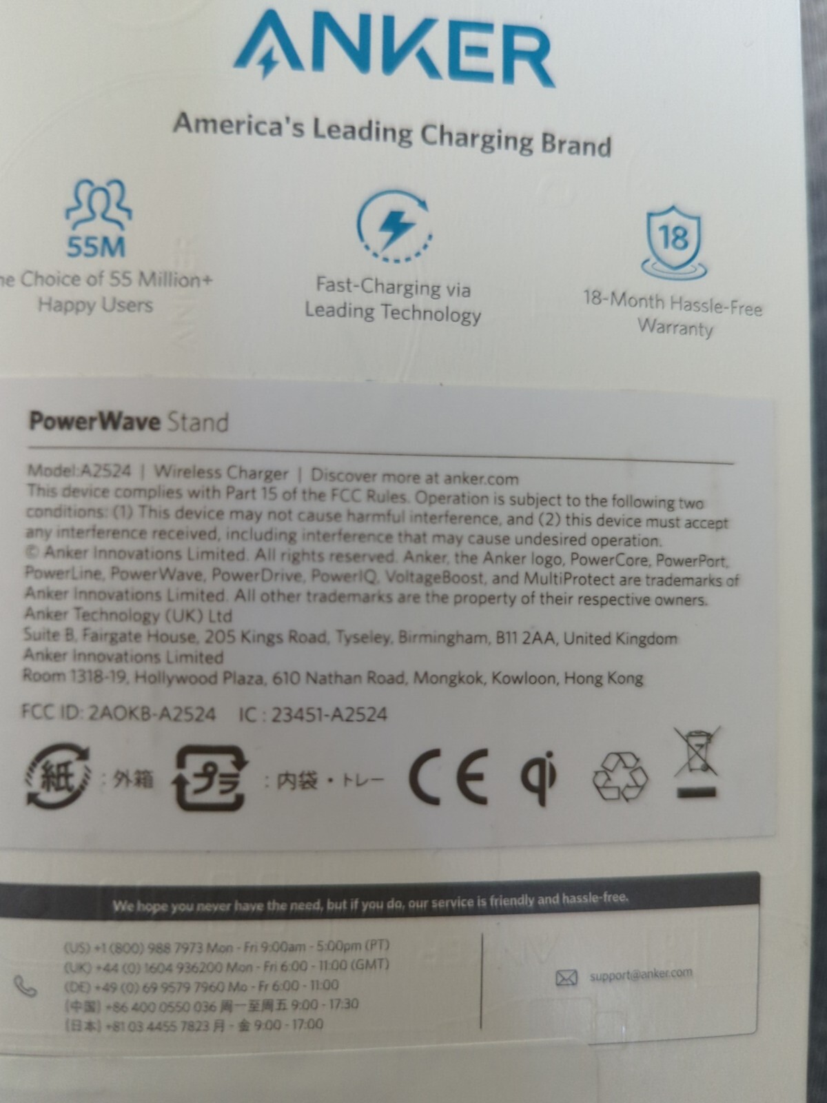 Wireless Charger - Anker Model A2524 PowerWave Stand. Open box Like new