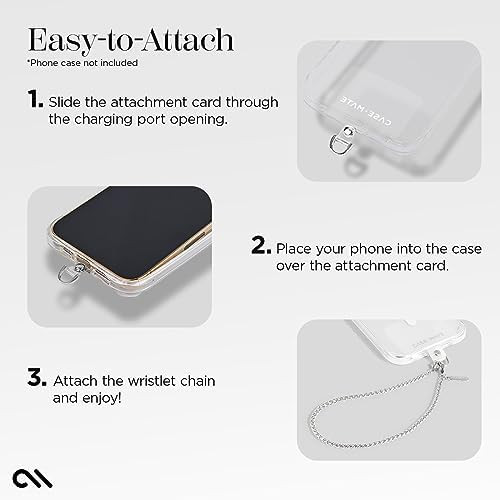 Phone Charm | Detachable Anti Theft Phone Strap | Hands-Free iPhone Wrist Strap for Women | Phone Chain Wristlet - Fits Apple, Samsung, Google Pixel & More | Gold Chain/Black Leather iPhone Charm Strap for Timeless Fashion: Make your phone stand out with this stunning cell phone wrist strap, thoughtfully made from premium, resilient chain material. Our gorgeous phone leash iPhone strap adds a touch of elegance & sparkle, making your phone look like a piece of jewelry. Forget about boring phone keychain & wrist strap for phone case —the stylish phone straps for iPhone are perfect for drawing compliments, catching eyes, & bringing a luxurious feel to your phone.,Guards Phone Against Drops & Theft: Never worry about accidental drops or theft again with our phone leash anti theft wristlet. Whether you're traveling, attending crowded events, or exploring the outdoors, this anti theft phone strap wrist lanyard provides a firm grip, preventing your phone from slipping out of your hands or pockets. Our iPhone wristlet strap secures under your phone case for added security, making it an essential iPhone leash accessory for travelers & anyone on the go!,Keep Your Phone Close & Accessible: Stay effortlessly connected with our phone charm strap. With its elegant & strong metal wire construction, this iPhone chain wrist strap provides convenient access to your device, allowing you to capture moments, take notes, or answer calls without searching through your bag. Quickly access your phone with our phone bracelet strap, providing a secure wrist fit & fitting most cases, while adding detachable, premium phone case charms to your phone.,Go Hands-Free & Charge Seamlessly: Upgrade your phone's aesthetic with Case-Mate's phone wristlet strap. Designed for modern multitaskers, this iPhone 15 Pro Max lanyard provides hands-free convenience, ideal on busy days. What's more, the iPhone keychain enables hassle-free charging without blocking the port, ensuring your phone stays powered up even with the wrist phone strap attached. Explore Case Mate's wrist lanyard for phone — style & functionality in one sleek package.,Complete Phone Charms Aesthetic with Warranty: Treat yourself or someone special to the Case-Mate's iPhone lanyard wrist straps for phones. Easy to install in seconds, this universal fit iPhone bracelet strap adds personality & protection to any phone model. Enjoy the compliments while knowing the cell phone charm strap is backed by a 1-year warranty. Package includes 1 unit of Case-Mate phone wrist lanyard — Gold Chain/Black Leather. Note: Phone cases are sold separately.