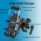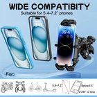 【Shockproof Protection】The motorcycle phone mounts uses 8 vise-like silicone claws to wrap your phone in all directions. It is equipped with 4 sets of elastic devices for cushioning and shock absorption to protect your device from being thrown around.The phone clip and phone camera adopt a non-contact design to prevent the phone camera from being squeezed while riding. 【Protective Cell Phone Holder】The double socket arm and handlebar mounting base of the motorcycle cell phone mount are equipped with aluminum alloy special anti-theft knobs. ❗A special wrench is included in the package for tightening the anti-theft knob (you can turn it by hand when there is no pressure in the middle of the clamp arm). This design prevents your motorcycle phone mount from being easily removed. 【Sturdy and Safe】The main body of this phone mount for motorcycle is composed of high-strength composite PA66+GF30%. With high-speed safety lock and double locking, it can ensure the safety of the mobile phone connected to the motorcycle handlebar even if the speed reaches 100mps. A good choice for long term use. 【One-Handed Operation】The width of the phone holder for motorcycle can be adjusted, adjust the width of the mobile phone clip to fit the first time, and later you can really enjoy quick installation and release with one hand. 【720 Degree Rotation】 The phone can be easily adjusted to horizontal or vertical screen, with moderate damping, which not only allows you to easily change any angle, but also can be firmly fixed on the bike phone holder after adjustment. 【Wide Compatibility】The body size of the scooter accessories can be adjusted in width and length according to the size of your phone, ❗Suitable for all diagonal lengths 5.4-7.2 inches (137-183mm), width 3.5 inches (88mm) Below, mobile phones with thickness (with protective cover) less than or equal to 0.787 inches (20mm). The motorcycle cell phone holder handlebar mounting base is suitable for handlebars with a diameter of 0.472-1.77 inches (12-45mm), and is suitable for installation on motorcycles, mountain bikes, off-road vehicles, road vehicles, golf carts, electric scooters, ATVs, etc. 【Installation steps】Step one: Install the handlebar base to the motorcycle and tighten the knob. Step two: Loosen the knob on the double socket arm. Step three: Insert both balls into the double sleeve arm at the same time. Step four: After adjusting the angle, tighten the double socket arm knob. The installation is complete. 【Note】The anti-theft design is to ensure that the mobile phone mount is not easily removed, not an anti-theft design for mobile phone