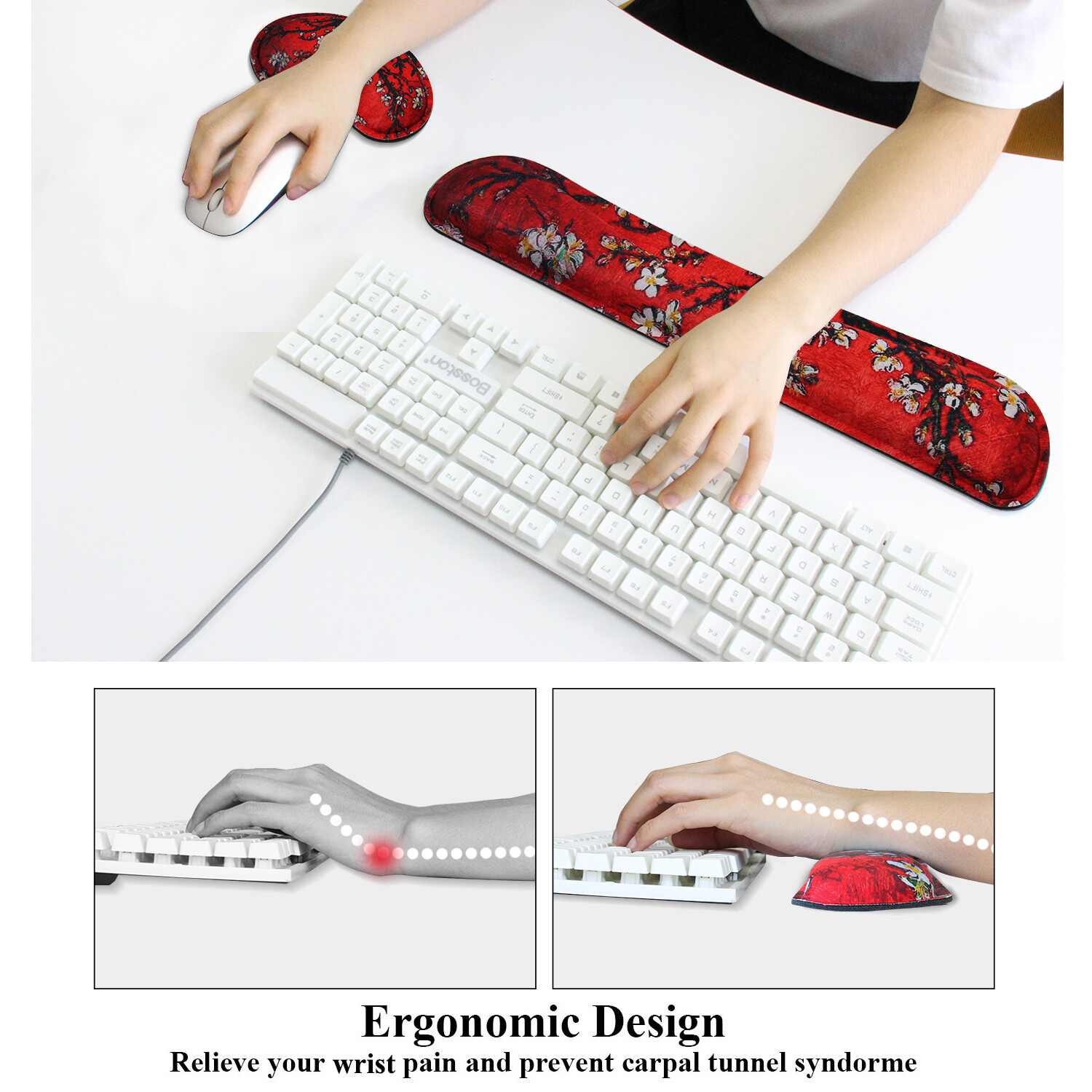 Anti-Slip Keyboard and Mouse Wrist Rest Combo Set - Ergonomic 3003 Support Cushion