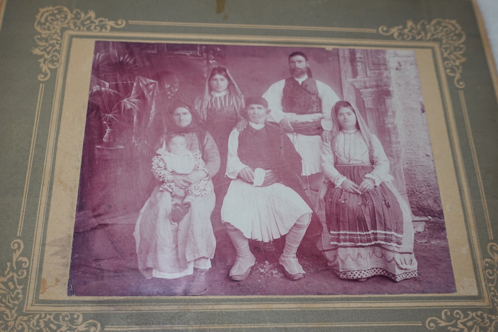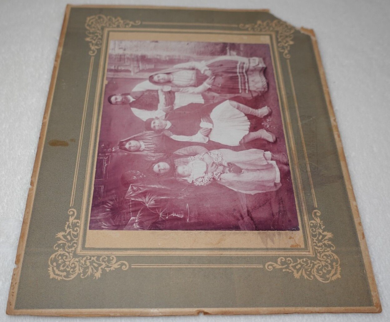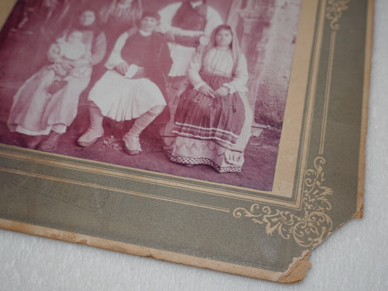 Antique Greek Family Historical Greece Europe Collectible Photo Measures approximately 8" x 10". Item is in antique condition. The bottom right corner is missing. There is heavy edge chipping, edge tearing, dinged edges and corners, creasing, staining, discoloration and marks. Please see photos for more information on condition and ask any questions you may have.