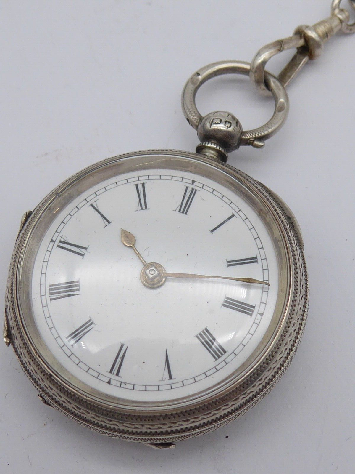 Offered for auction is a superb antique Victorian ladies solid sterling silver fob / pocket watch with Albertina in box. The watch is hallmarked for Birmingham 1896 by William Ehrhardt. A Fine quality example with beautiful engraved decoration to the case. The Albertina is unmarked but tested as silver and has two tassel fobs attatched. The watch comes with key. The watch measures approx. 41 mm wide. The Albertina is approx. 22.5 cm long including tassels Thanks for looking, please check out my other items and add me to your favourite sellers for similar items listed every week Please note all items are listed for auction without reserve and with no buy it now prices