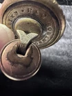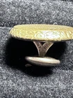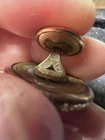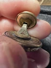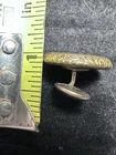 This antique round button in gold color is a rare find for collectors. Signed by R & W Robinson on November 15, 1881, this extra rich pat button is a unique addition to any collection. Its suitability for jackets and coats makes it a versatile piece for display. The button's originality and pre-1930 time period add to its antique value. The material is unknown, adding to the mystery and charm of this piece. This stud/jeans button is a must-have for anyone interested in antique sewing items. ************** This button has a very unique stud where you can move it or I guess open and close it to close and open your coat … tried to show in pics… thank you. For looking
