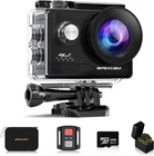 Action Camera 4K with 64G SD Card Sports Camera 20MP 131FT Waterproof Underwater Camera 170°Wide-Angle WiFi Camera with 2.4G Remote Control, 2 Batteries, Mounting Accessories Kits Professional 4K Ultra HD Action Camera: Available in 4K / 30FPS, 2.7K / 30FPS, 1080P / 60FPS, 1080P / 30FPS, 720P / 60FPS and 720P / 120FPS video resolutions. With 16MP images and a 170° super wide-angle 6G fisheye lens,Capture and share your world in a fantastic resolution. Wireless Wrist 2.4G Remote Control: Bring the remote control on your wrist, and install the action camera on the helmet or the place where it can't be touched. It is convenient to record the wonderful moment. The remote control wireless range is 15 meters (49 FT), and the remote control waterproof level IPX6 life waterproof, please do not immerse the remote control in the water. 2.0’’LCD WiFi Action Camera: Use APP/APK to keep and share your exciting sports moments on your phone or tablet, WiFi signal range up to 10M(33 FT), 2.0’’LCD HD display allows you to preview anytime, anywhere Wonderful videos and photos in motion. 130FT Waterproof Camera Free Accessories: Equipped with durable IP68 waterproof sleeve can dive 40 meters deep, ideal for swimming, diving, rafting, surfing and other water sports, this underwater camera is also equipped with 2 rechargeable 1050mAh battery and the battery charger can charge two batteries at the same time, very convenient to save time. And it comes with many other multi-functional accessories (most are compatible with gopro cameras). Multi-Function Action Camera: Including loop recording, slow motion photography, driving mode, image flipping, time-lapse photo, exposure adjustment, white balance adjustment; You can take the camera to a variety of sports environments and use it, the effect will exceed your expectations.