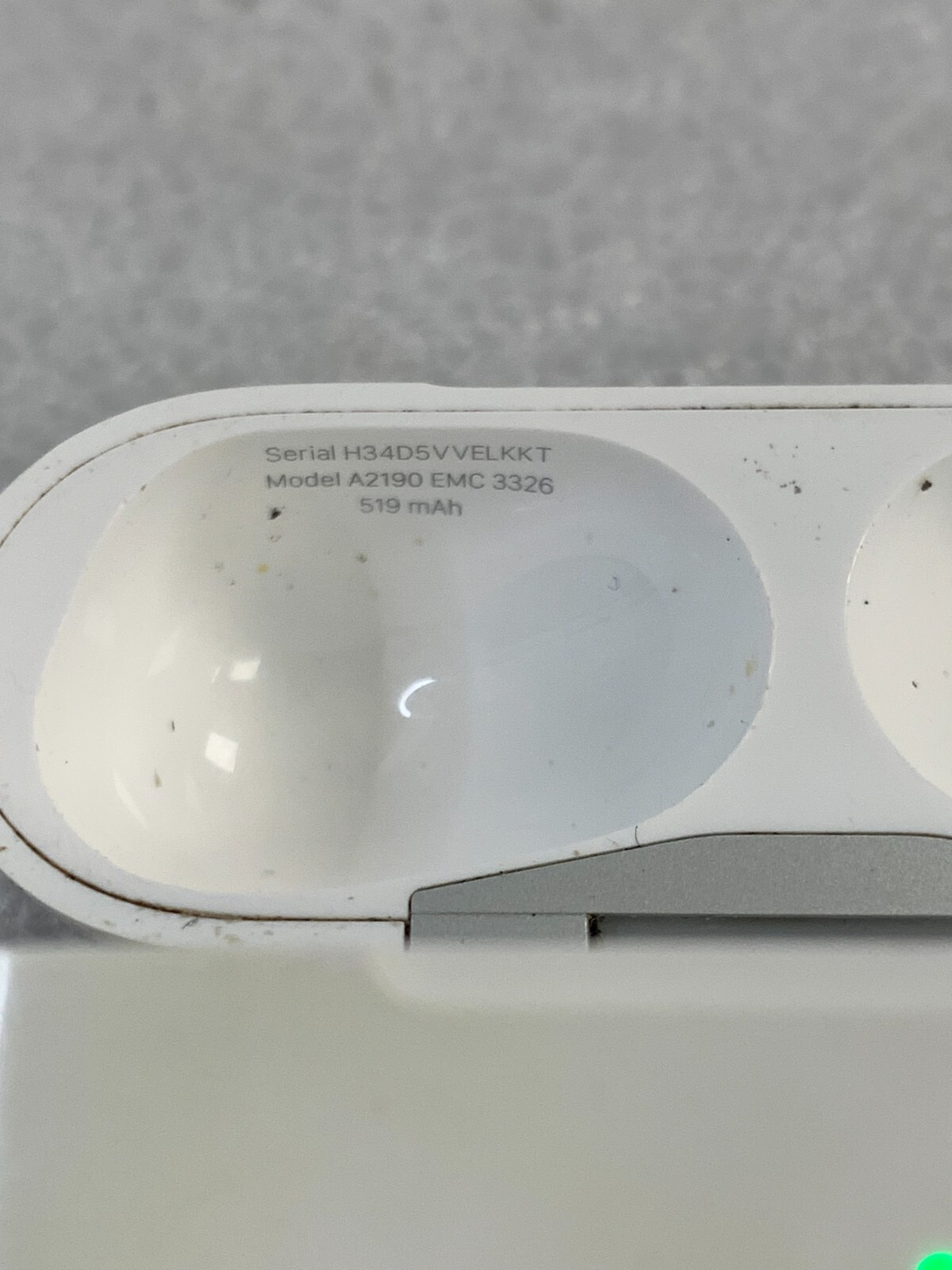 Item Description Apple A2190 AirPods Pro Charging Case CASE ONLY FREE SHIPPING Battery life not guaranteed This item HAS PASSED A POWER TEST AND A VISUAL INSPECTION (The item powers on and has no major physical damage). If we found any issues, they will be stated in the description above and/or shown in the pictures. Please read the description and look at the pictures before purchasing. Thank you Functional Co ndition: F4 - Hardware Functional Cosmetic Condition: C4 - Used Good Data Sanitization: S2 - Non-Data ~PLEASE READ BEFORE BIDDING . All items that we sell are guaranteed to be as described in the listing. Everything that is included in the auction is described and / or pictured above. If there is no indication of whether something is included, please do not assume it is. Please ask any questions you may have prior to purchase or bidding.