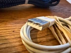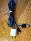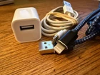 2 authentic Apple USB Lightning Cable Cords, perfect for charging your Apple devices. The 3.3ft and 6.5ft cables are designed with a Lightning connector on one end and USB on the other, allowing you to charge your phone, iPad, or Apple Watch. The cable is made of durable plastic and comes in a sleek white color that matches any device. With one port and a cable length of 3ft, this cable is perfect for charging your Apple devices from a distance. The cable is compatible with various Apple models. I used them for my iPhone 13 pro. 1 used but in excellent condition, come with my phone. The other I bought and never used, its 6.5' long nylon cord. The cube works for both cables, its a 5 watt USB.