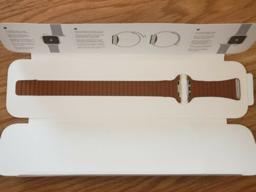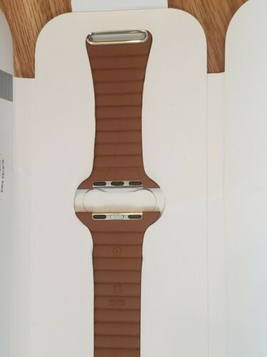 Apple Watch Band 44mm/42mm Saddle Brown Leather Loop Large L Genuine OEM. Condition is "Used". Shipped with USPS First Class. Band is in good condition. Box and packaging has damage. Band fits 180 - 210mm wrists. From the manufacturer: The Venezia leather for this band is handcrafted in Arzignano, Italy. With an artisan heritage spanning five generations, the tannery has a history of partnership with some of the most prestigious names in fashion. A delicate milling and tumbling process enhances the beautiful pebbled texture. And magnets concealed within the soft, quilted leather allow you to simply wrap it around your wrist for a precise fit and a trim look.