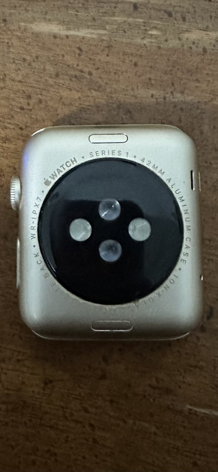 This stylish Apple Watch Series 1 is the perfect companion for your active lifestyle. With its sleek gold case and matching microfiber band, this watch is sure to turn heads. It features a 42mm case size and runs on the user-friendly Apple Watch OS, compatible with iOS devices. This watch is ideal for those who want to stay connected while on the go. Whether you're tracking your fitness goals or receiving notifications, this watch has got you covered. Don't miss out on this opportunity to upgrade your daily routine with this premium Apple Watch Series 1.