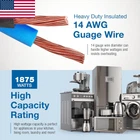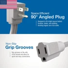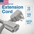 POWERS MAJOR APPLIANCES - Ideal as an air conditioner extension cord, refrigerator extension cord, microwave extension cord, and high voltage extension cord for power tools or large appliances including washer, dryer, and dishwasher. FLAT SPACE EFFICIENCY - 90-degree angle plug allows the flat extension cord to remain flush to the wall. Designed to fit in tight spaces behind furniture, bookshelves, desks, and anything blocking regular use of an outlet. Maximize floor space. HEAVY DUTY INSULATED - Our appliance extension cord is made with thicker 14 AWG wire diameters which can handle more amperage, and therefore more wattage. Reduces the chance of getting hot. 14 gauge is safer and more reliable. EASY GRIP GROOVES - Grip grooves on the side of the female end allow for easy connection and disconnection of the appliance cord. Cord is made from heavy duty vinyl for durability and resilience that is also soft, flexible, and easy to fold. HIGH CAPACITY 1875W - Get more from your heavy duty extension cord with a high capacity 1875 Watt rating (15 Amps, 125V). Link additional extension cords, power strips, surge protectors, plug adders, and devices up to a max of 1875W. Product Description Designed for convenience, long-lasting durability, and improved safety, the 14 Gauge Extension Cord from DDON USA fits everywhere indoors that a regular heavy duty extension cord cannot. 90-degree flat angle plug is great for large appliances and tight spaces. PRODUCT FEATURES: 90-Degree Flat Plug 14 AWG Cord Heavy Duty Vinyl Insulation Max. Wattage: 1875 Amperage: 15 Voltage: 125 UV/UL Tested POWER YOUR MAJOR APPLIANCES Perfect for the kitchen, laundry room, and your home beyond. 1875-watt capacity makes this cord ideal for powering major household appliances like the washer, dryer, air conditioner, refrigerator, deep freezer, microwave, and dishwasher as well as power tools. Hook up as many devices as you like, so long as you do not exceed a maximum of 1875 watts. 90-DEGREE PLUG FOR A FLUSH FIT Convert your standard AC power cord into a slim, space-saving flat plug that fits into tight spaces. This allows you to push furniture closer against the wall and maximize available square footage. Extend your 3-prong outlets for plugging in computers, copiers, fax machines, and office equipment. Split the plug by linking additional extension cords, power strips, surge protectors, and plug adders. HEAVY DUTY FLEXIBLE VINYL High-quality construction features heavy duty, durable vinyl to insulate and protect the cord’s conducting wires. 14 AWG gauge is thicker to better resist moisture, abrasion, extreme temperatures, and the damaging effects of sunlight. Will not crack, fade, or deteriorate. TO FIND TOTAL WATTS BEING USED: Add the number of watts marked on each item to be used with this cord set. If watts are not marked on appliance, multiple the ampere rating shown (on nameplate) by 125 to determine the equivalent watts for each plugged-in appliance or lamp. NOTE: For dry indoor use only. For safety reasons, do not exceed 1625 watts worth of plugged-in devices.